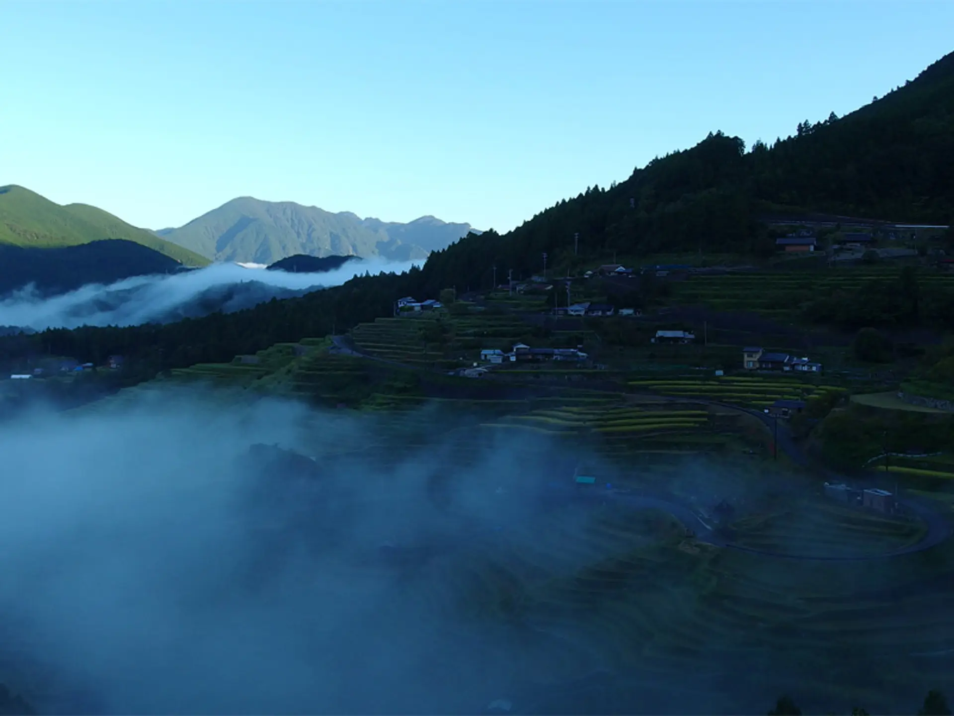 また、冷え込みが強くなる10月中旬以降、雨上がりの寒い日なら、朝の6時半から7時半頃に、運が良ければ棚田と雲海という神秘的な景色を見ることができます。