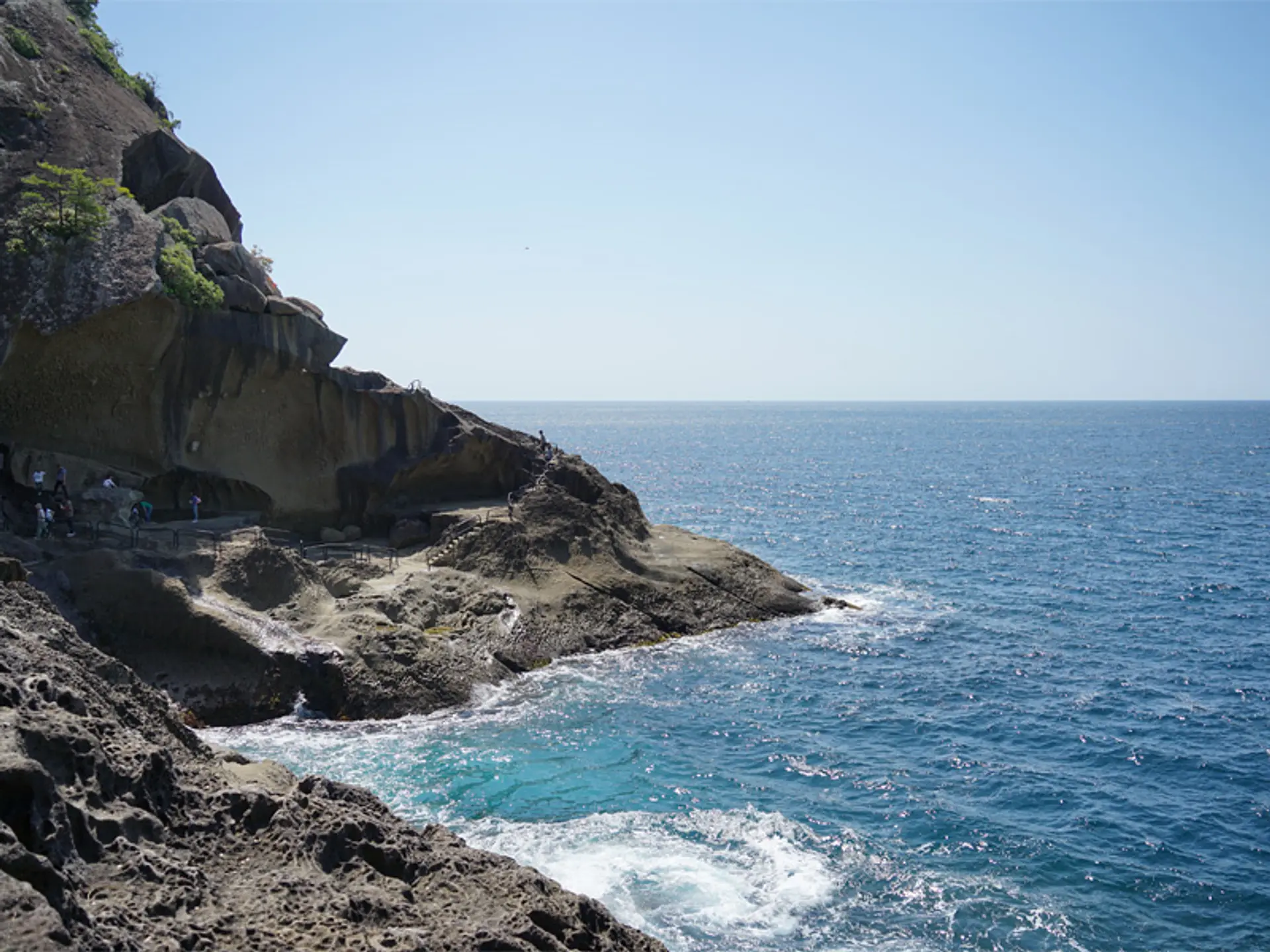 熊野尾鷲道路終点の熊野大泊(くまのおおどまり)ICを左折し、国道42号線を走っていると、日本百景の1つ、国の名勝及び天然記念物に指定され、世界遺産にも登録されている景勝地「鬼ヶ城」の看板がみえてが見えてきます。