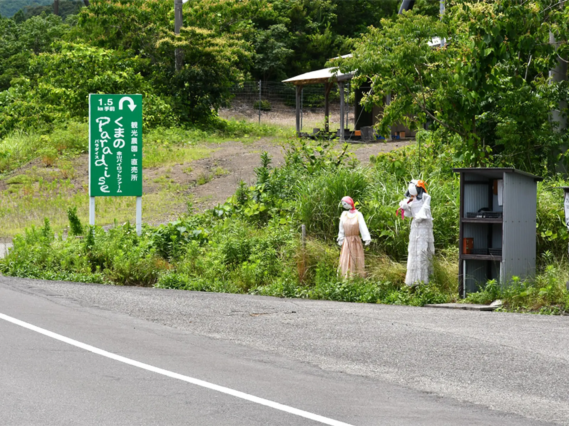 しばらく走っていると、案山子がお出迎え。