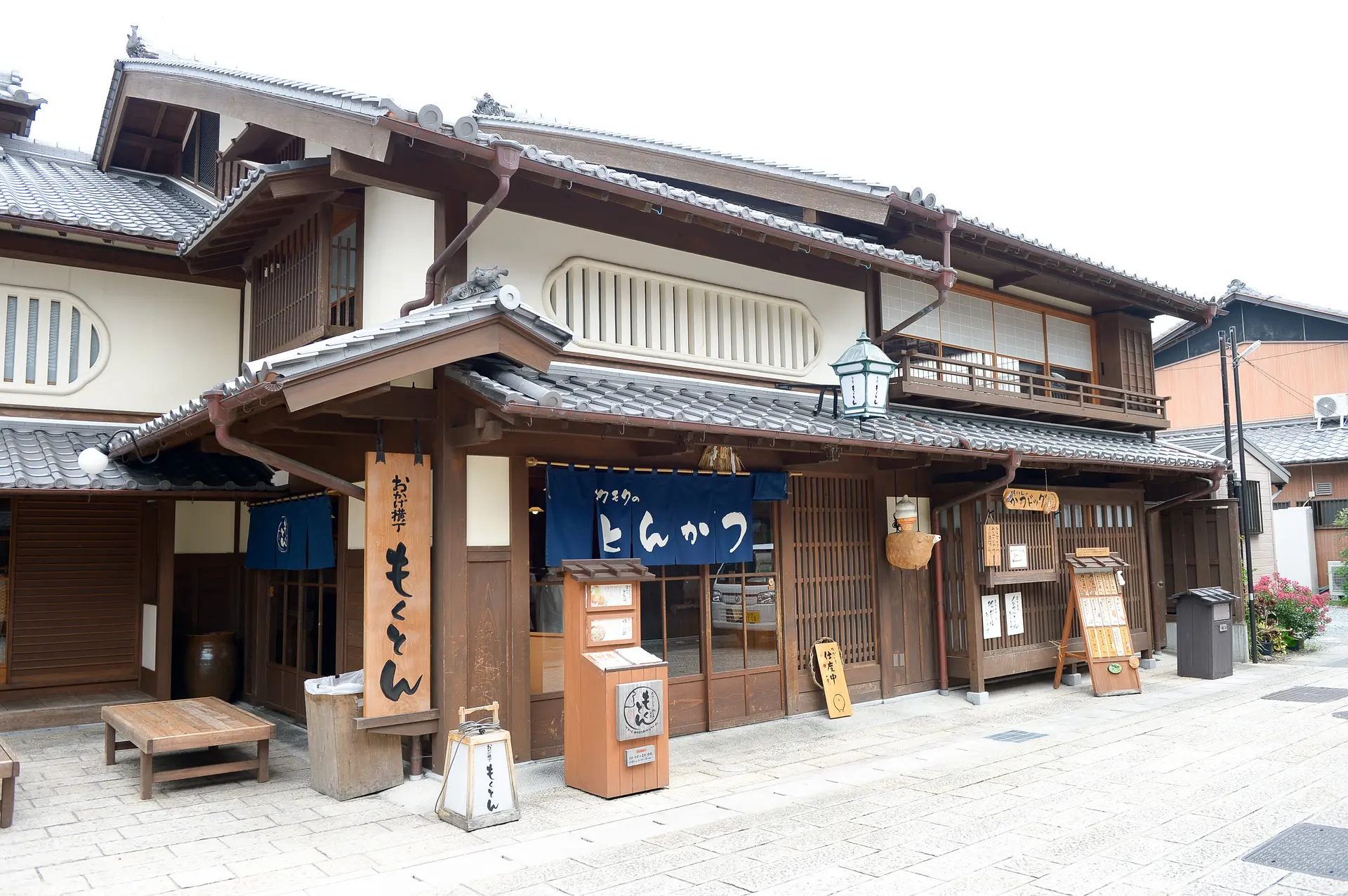 内宮からおはらい町通りを歩いて行った先にある「おかげ横丁」では、地元のお土産や食べ歩きグルメのお店などが並びます。