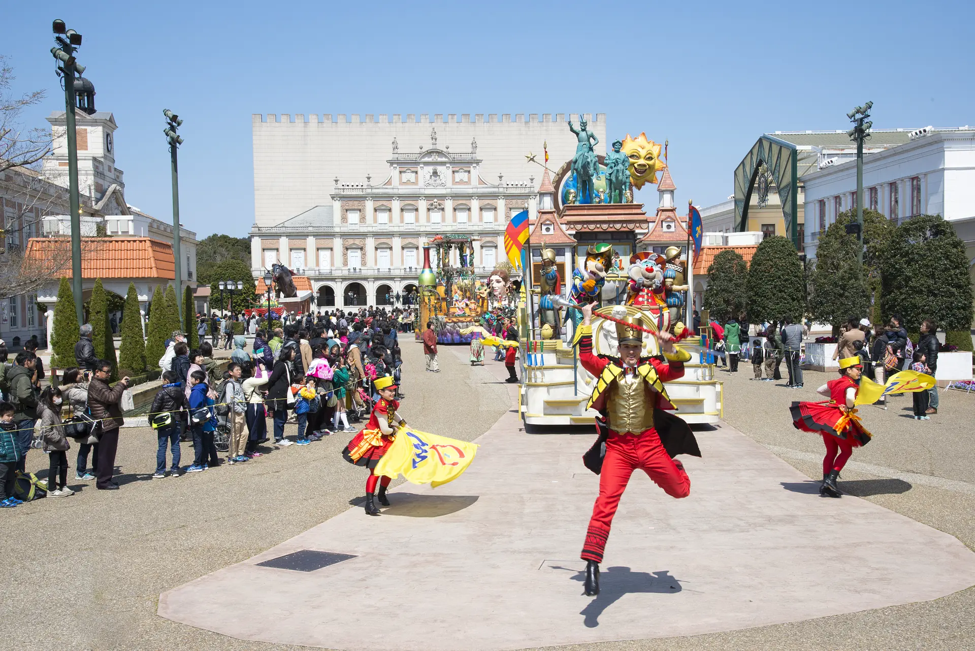園内を歩いていると、楽しげな音楽とともにパルケエスパーニャパレード「エスパーニャカーニバル“アデランテ”」が始まりました!