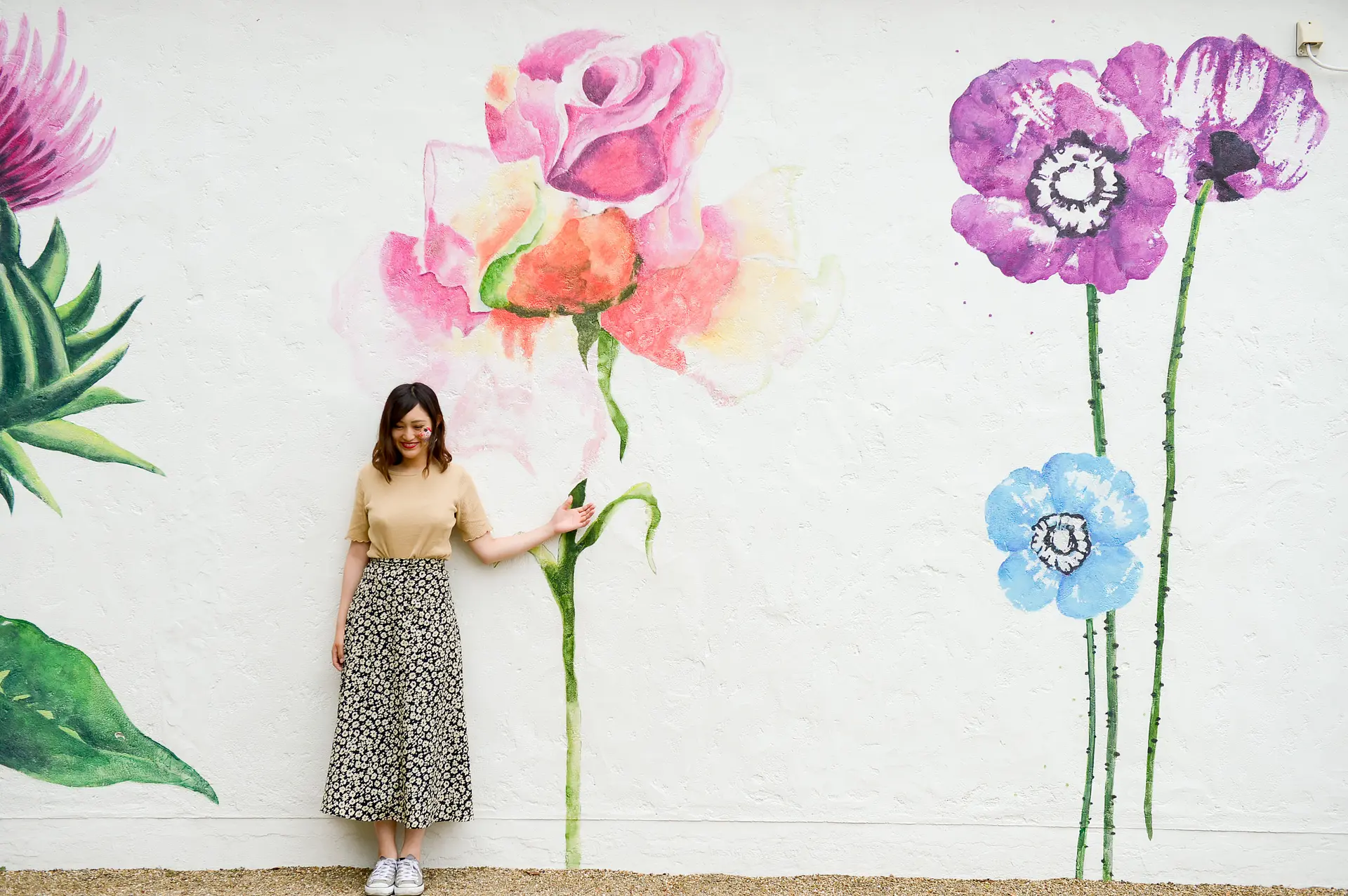続いて、カルメン通りを歩いていると、白い壁一面に大きなお花の絵画が描かれているウォールアートが出現!