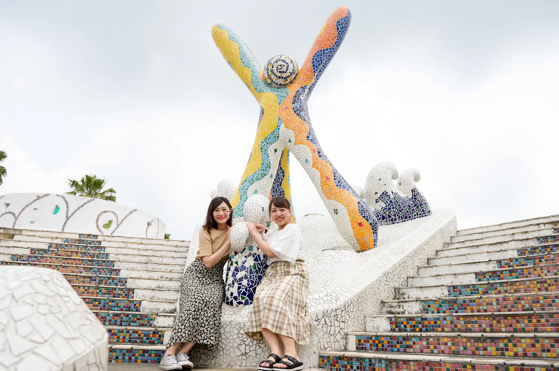カラフルなタイルが散りばめられた広場のあちこちでステキな写真が撮れます。
