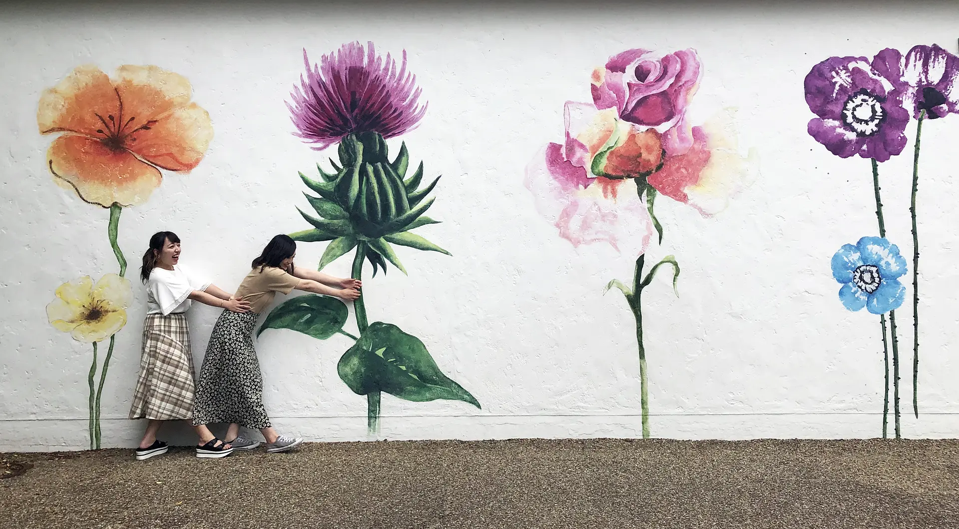 壁一面にアートのように飾られたお花たちをバックに写真を撮ってみたりと、街並み全体が写真スポットに!季節に合わせてお花も変わるので、訪れるたびに違った写真が撮れちゃうんです。