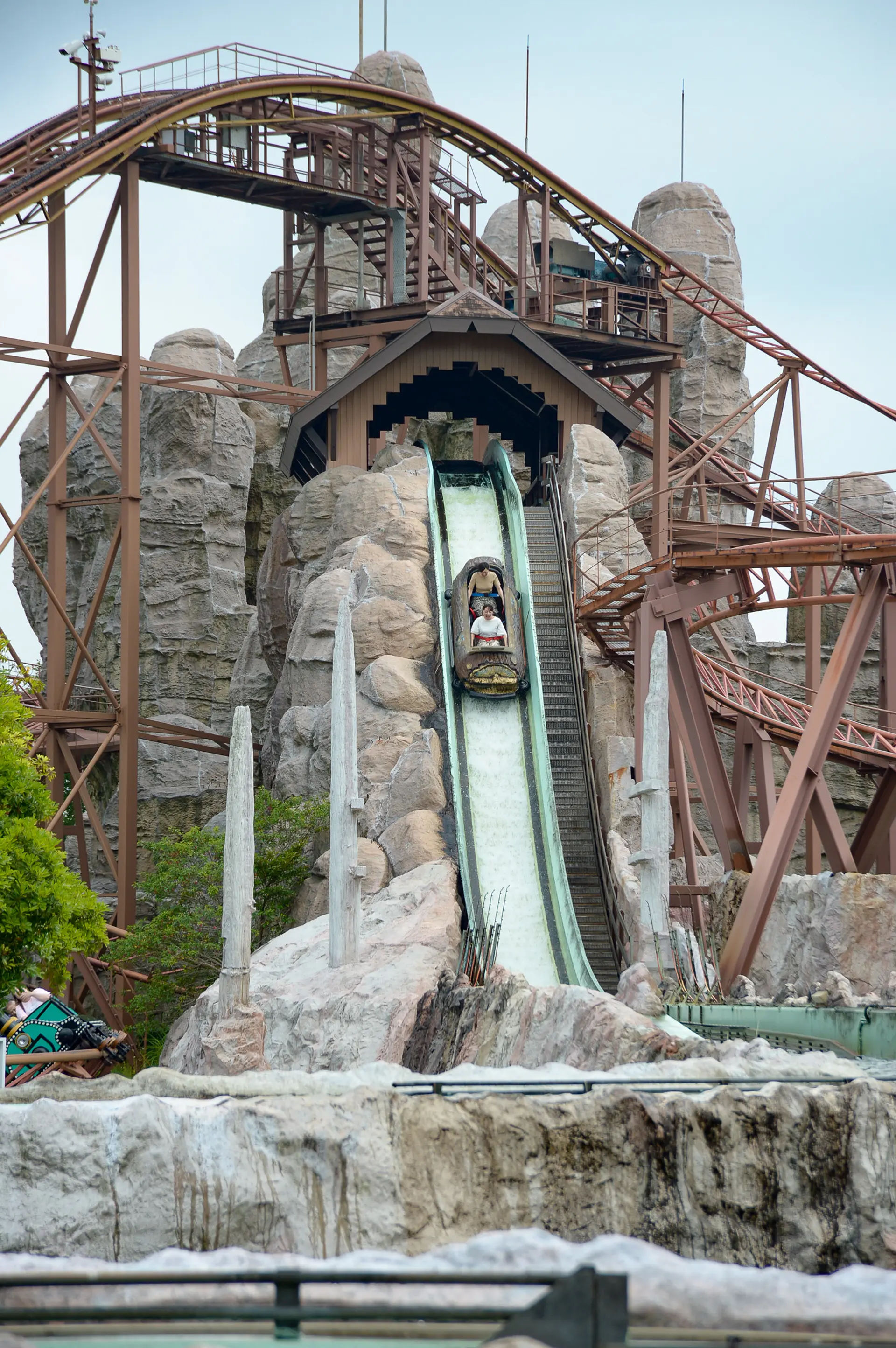 モンセラー山を丸太型のライドに乗って探検。クライマックスには激しい水しぶきをあげながらの急降下が!水しぶきがライド全体に降り掛かり迫力満点です。
