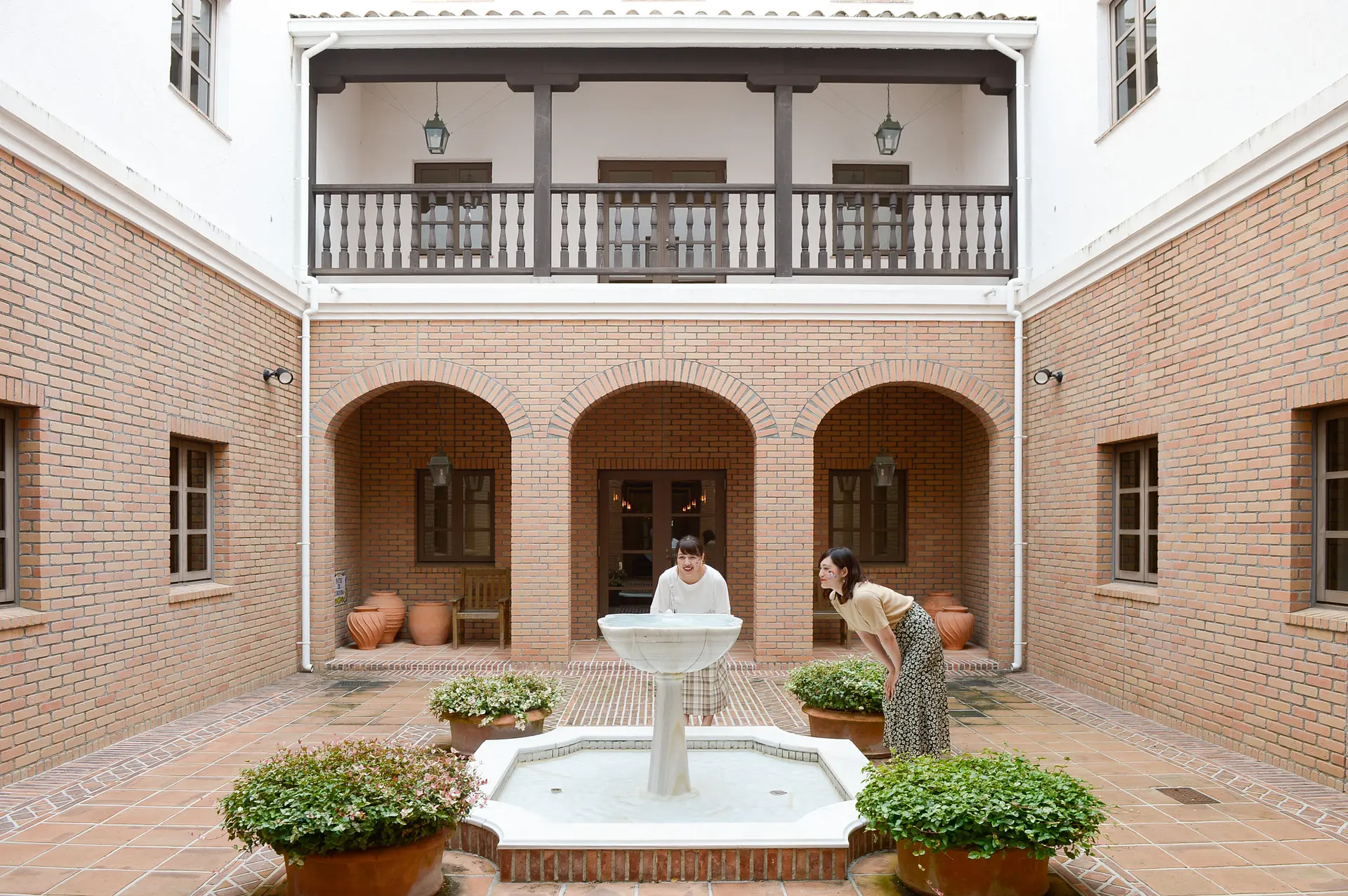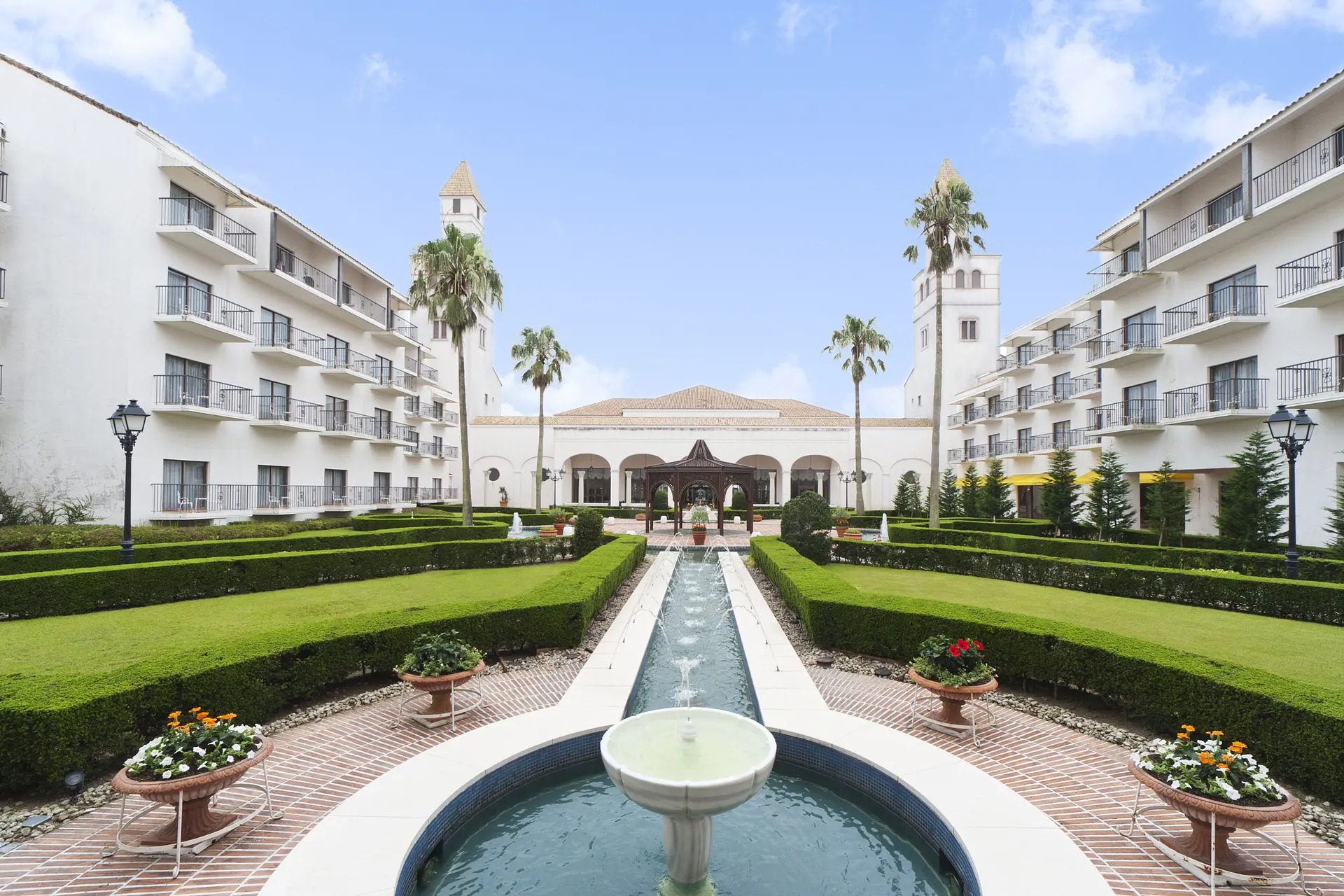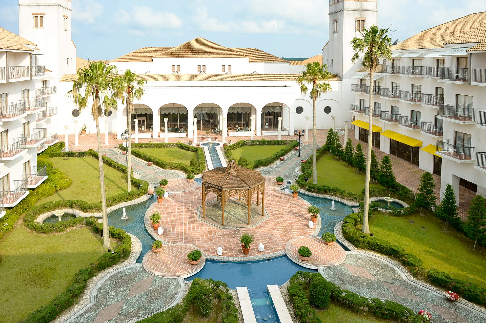 アンダルシア地方のコルドバ、セビリア、グラナダの3つの街をイメージした客室棟にある中庭には、それぞれの街の特徴が再現されています。