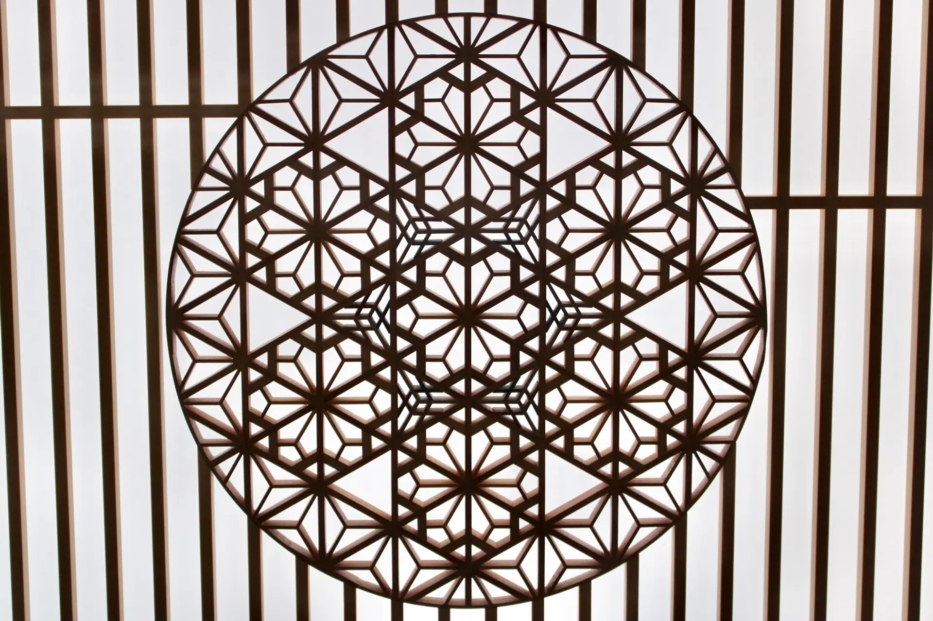 組子細工を得意とする建具屋さん「指勘建具工芸」さんにお邪魔しました。組子とは釘を使わずに木を組み付ける技術のこと。1.5ミリほどの木片を切り込みやほぞ(木材を接合するための突起)を施して組み合わせ意匠(模様)を作り出します。