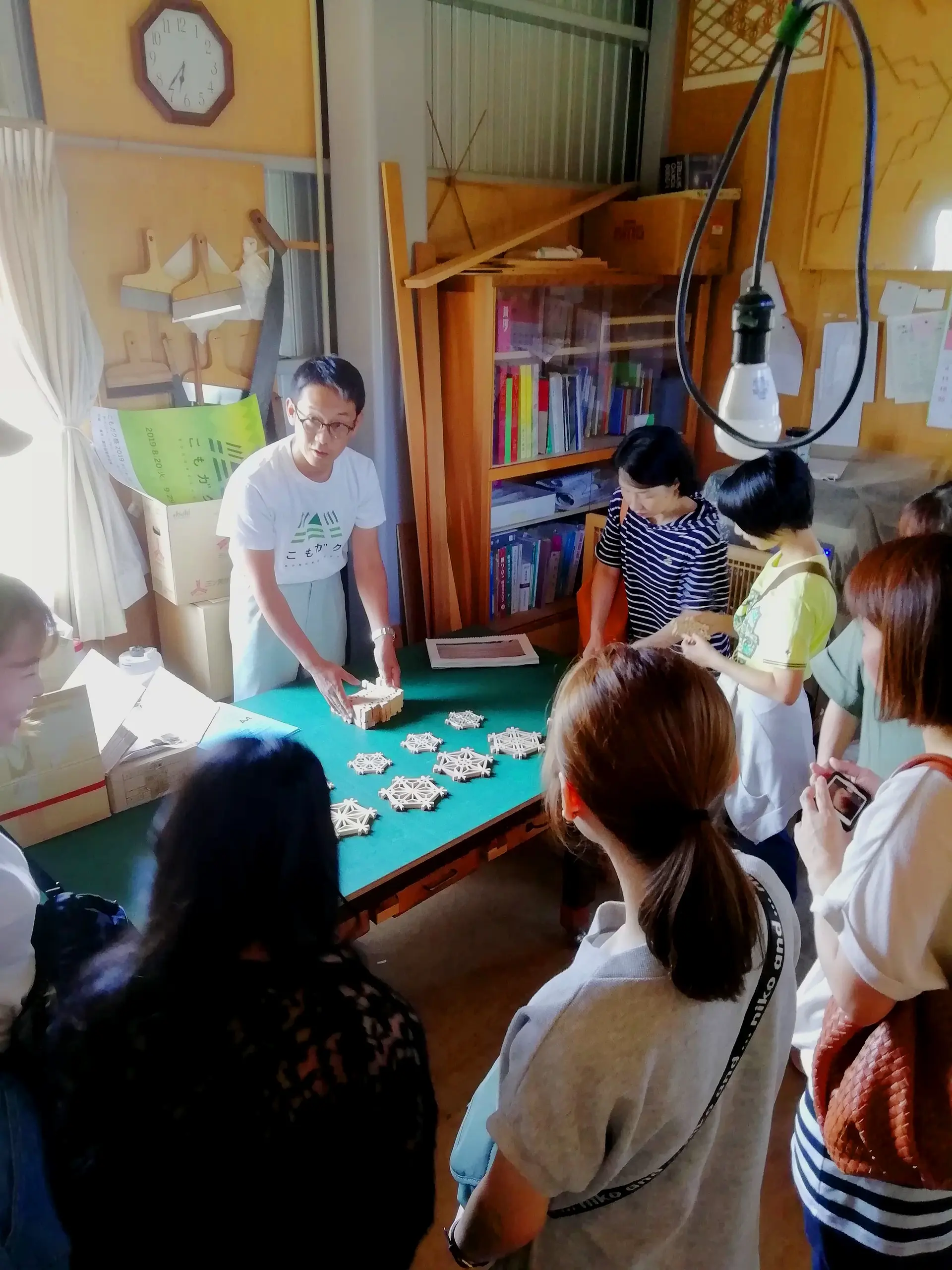 数十個のパーツを組み合わせたコースターでも苦労したのに、そのあと数万パーツの組子建具を見せてもらって驚愕!職人さんの凄さが体感できる塾でした。