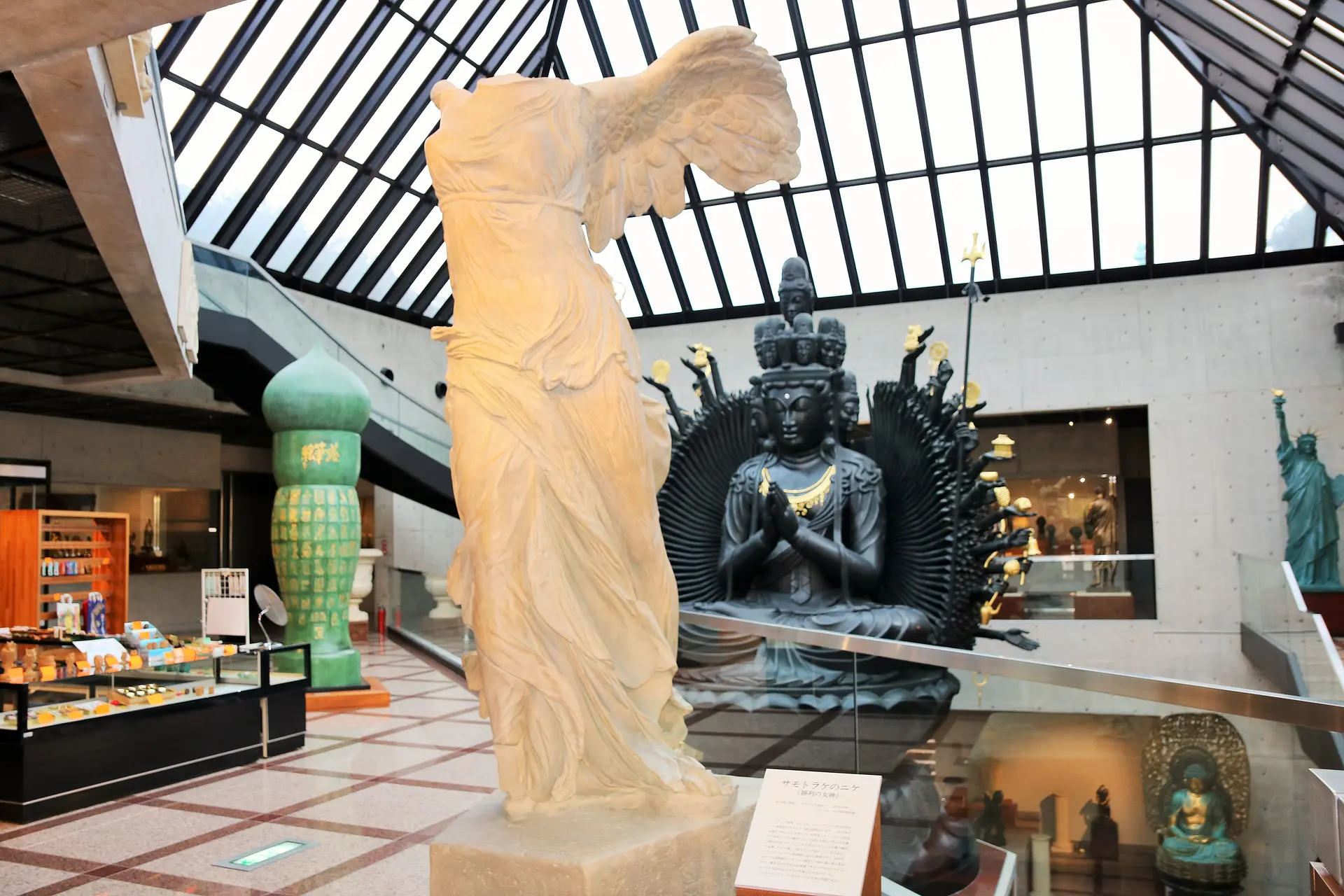 世界的に有名なパリ・ルーブル美術館の世界で唯一の姉妹館!約1,300品もの展示品はパリ・ルーブル美術館美術部の技術陣が作製した復刻作品で、実物より直接型取りしているので、大きさはもちろん、傷ひとつに至るまで実物と同じであるのが特徴。近鉄大阪線・榊原温泉口駅から徒歩5分の立地で、駅のホームからも大きな立像の姿を見ることができます。