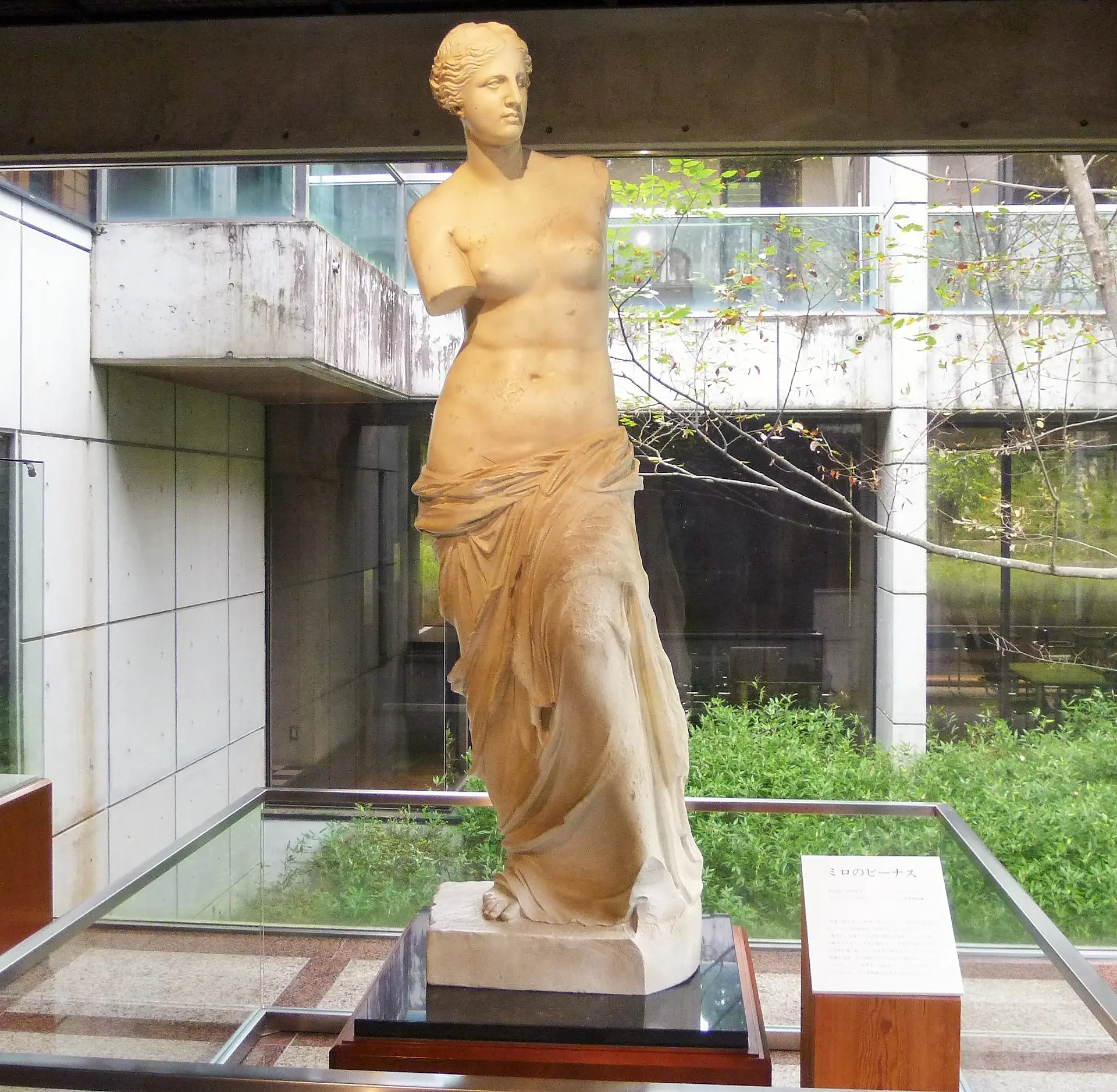 駅方面から看板の案内に従い北へ向かって建物の反対側へ回り込んだところが正面入口。こちら側でもサモトラケのニケ、ミロのヴィーナスが出迎えてくれます。
