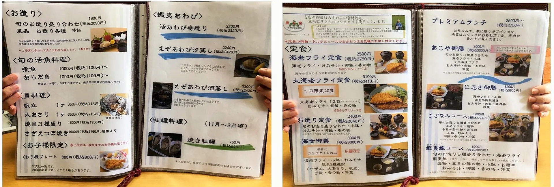 海老フライだけでなく、お子様プレートやお造り定食もあります。