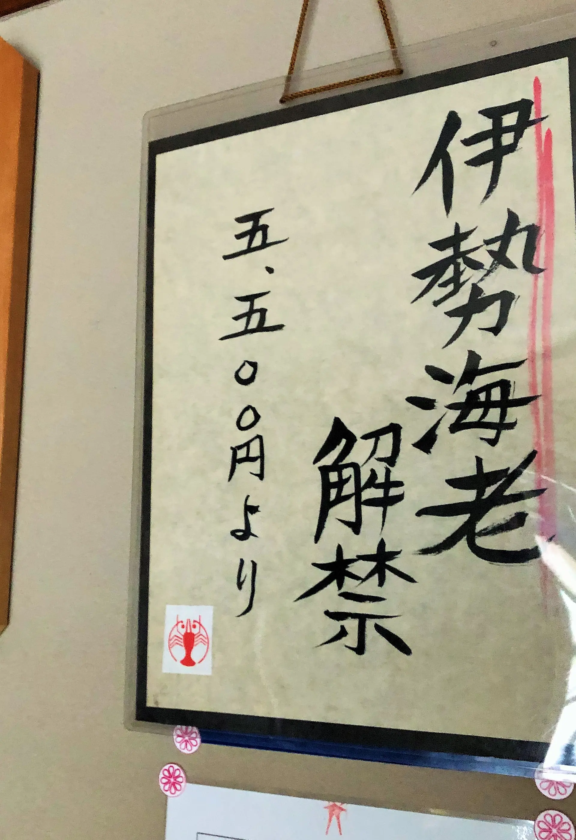 ついに伊勢エビの季節がやってきます。活造り、鬼瓦焼、汐蒸し、フライ、具足煮から好きな調理法を選べます。
