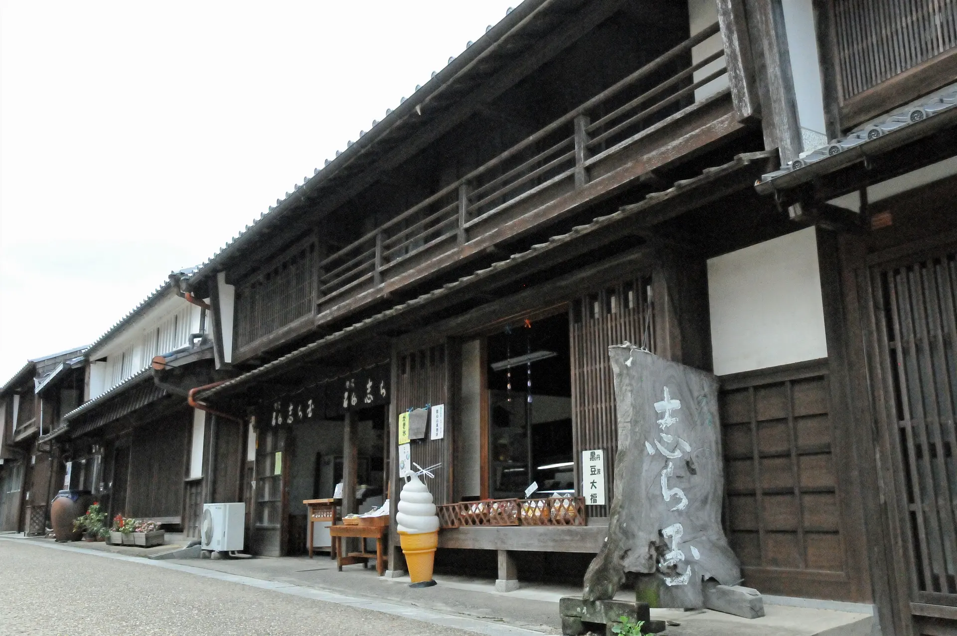 この日は、関の戸でおなじみの深川屋さんは定休日でしたが、もう少し西へ進むと趣のある建物と「志ら玉」と書かれた木製の看板が見えてきました。