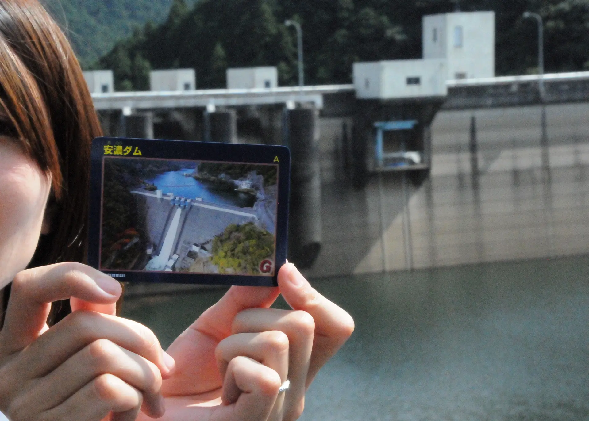 ダムカードとは、全国各地のダムで無料で配られているカードで、表面にダムの写真、裏面にはダムの大きさをはじめ各種データが記されています。