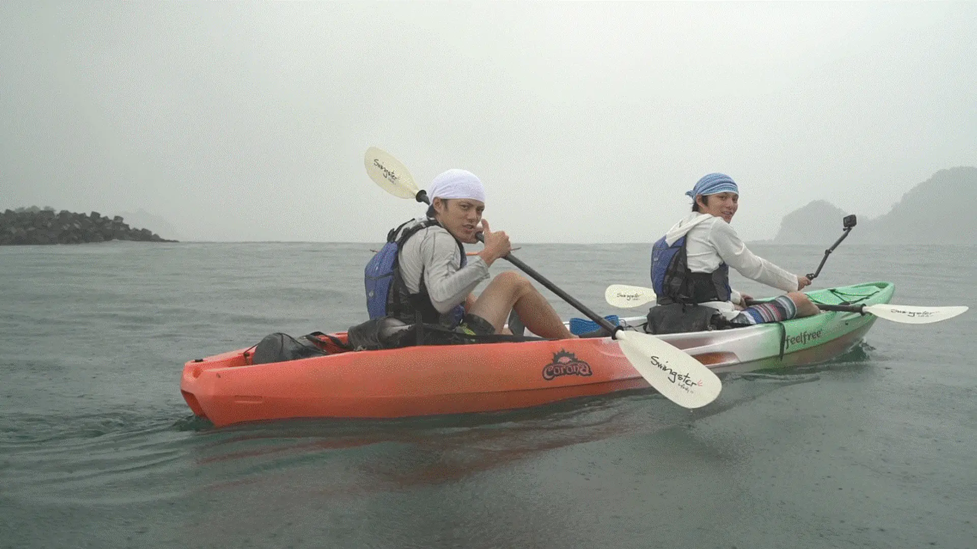 シーカヤックだからこそ行ける岩場の間を通り抜けたり、海が綺麗なので漕いで進んでいる途中に水中メガネを使って海の中を探索できたりと、あまりにも楽しいので時間を忘れさせてくれます。