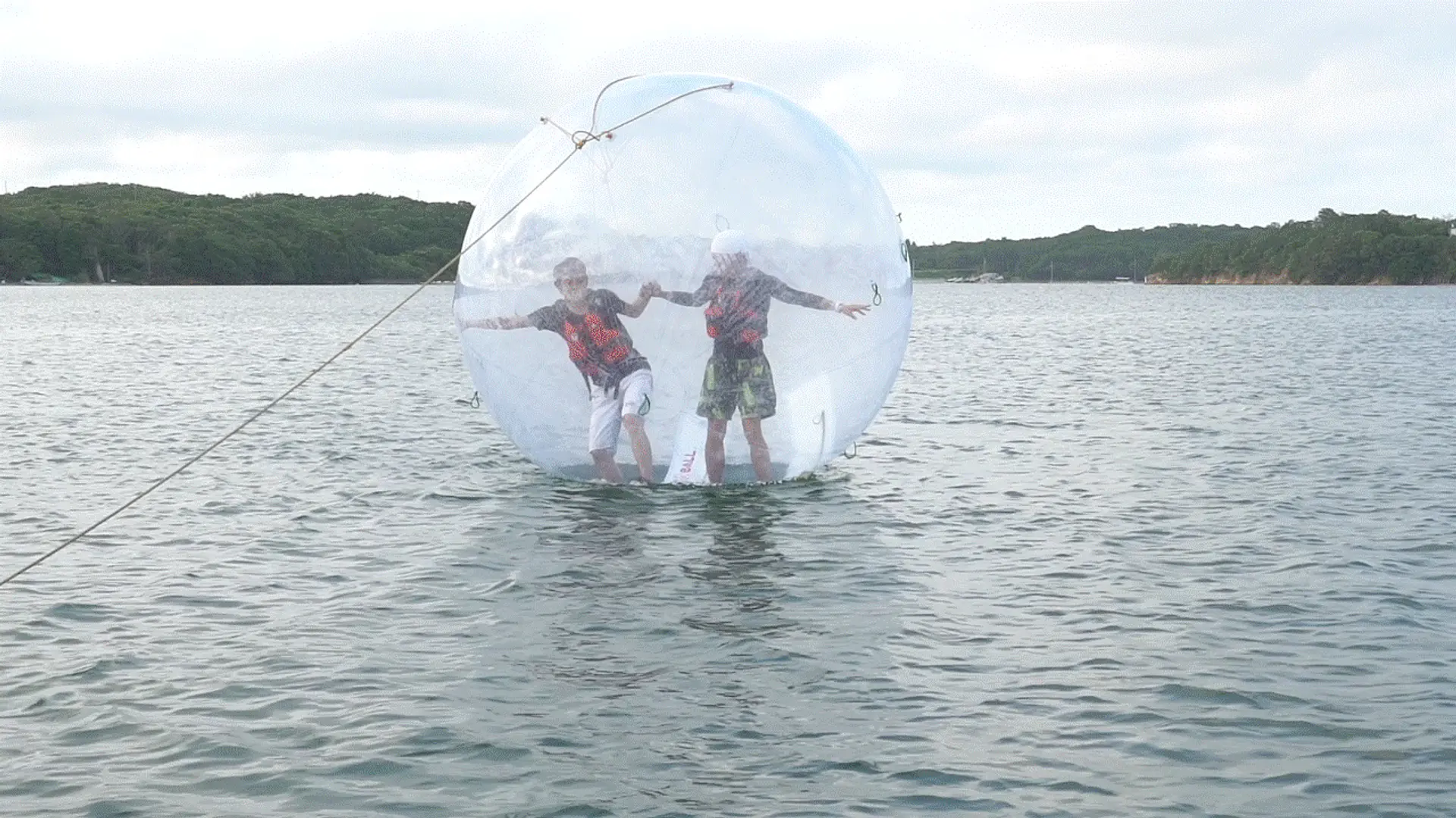 大きなボールの中に入って海上散歩ができるのが特徴ですが、透明なボールなので綺麗な空と海が見えるのが嬉しい。面白いのはボールの中で立つことが難しく、二人息を合わせることが秘訣!