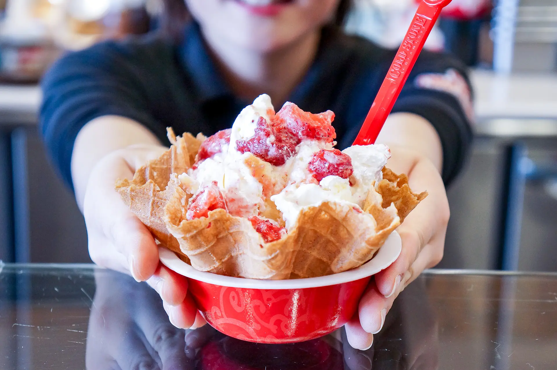 -9℃に冷やした石(コールドストーン)の上で、オーダーを受けてからアイスクリームとミックスイン(フルーツやナッツ等)を混ぜ合わせる、エンターテイメントアイスクリームショップ。