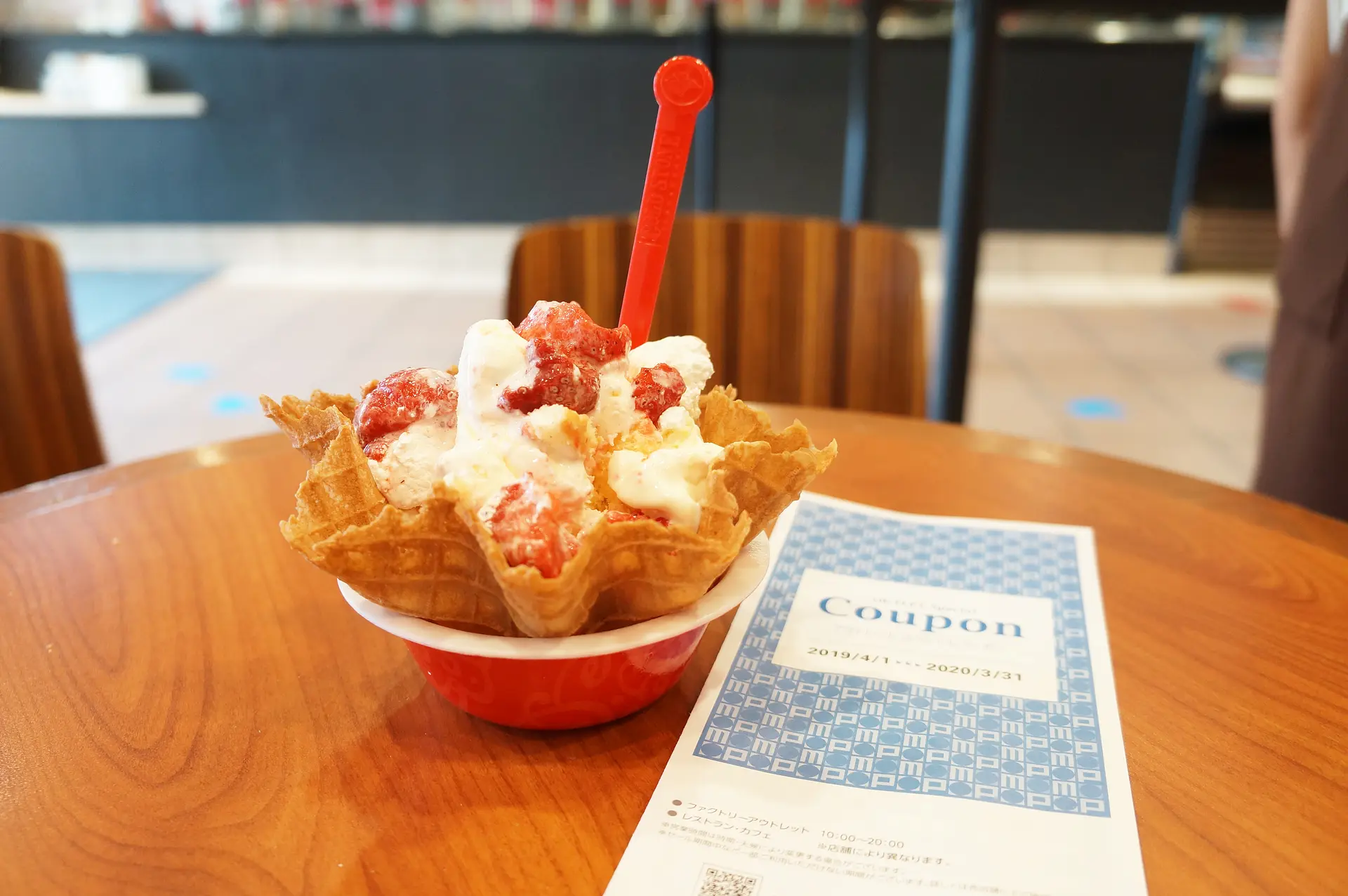 先ほどアンケートに答えてゲットしたスペシャルクーポンを使うと、ワッフルボールまたはコーンをプレゼントしてもらえます!