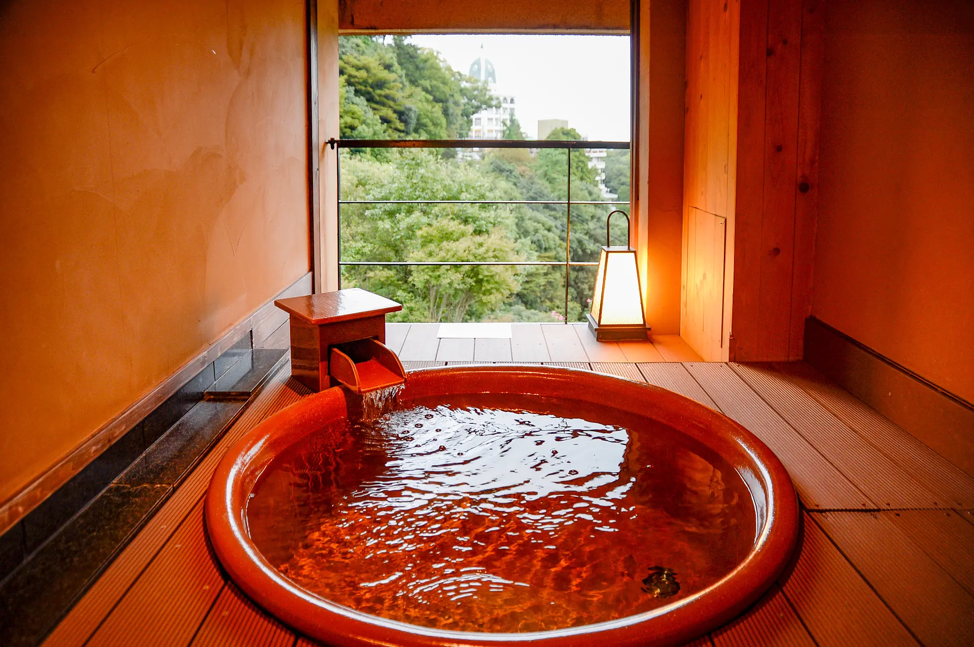 ※大浴場の内湯は24時間入浴可能。1つの貸切風呂は平日無料。日帰り入浴も可能。