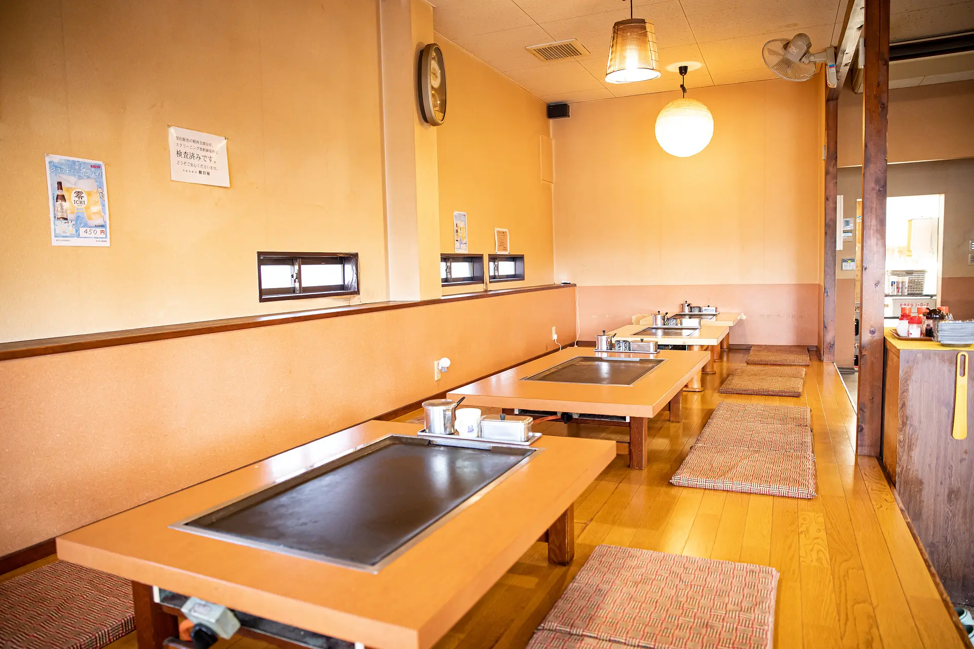 もちろん、家族連れや女子会用のテーブル席も完備。どの席にも鉄板が備えられているので、アツアツメニューをその場で楽しむことができます。