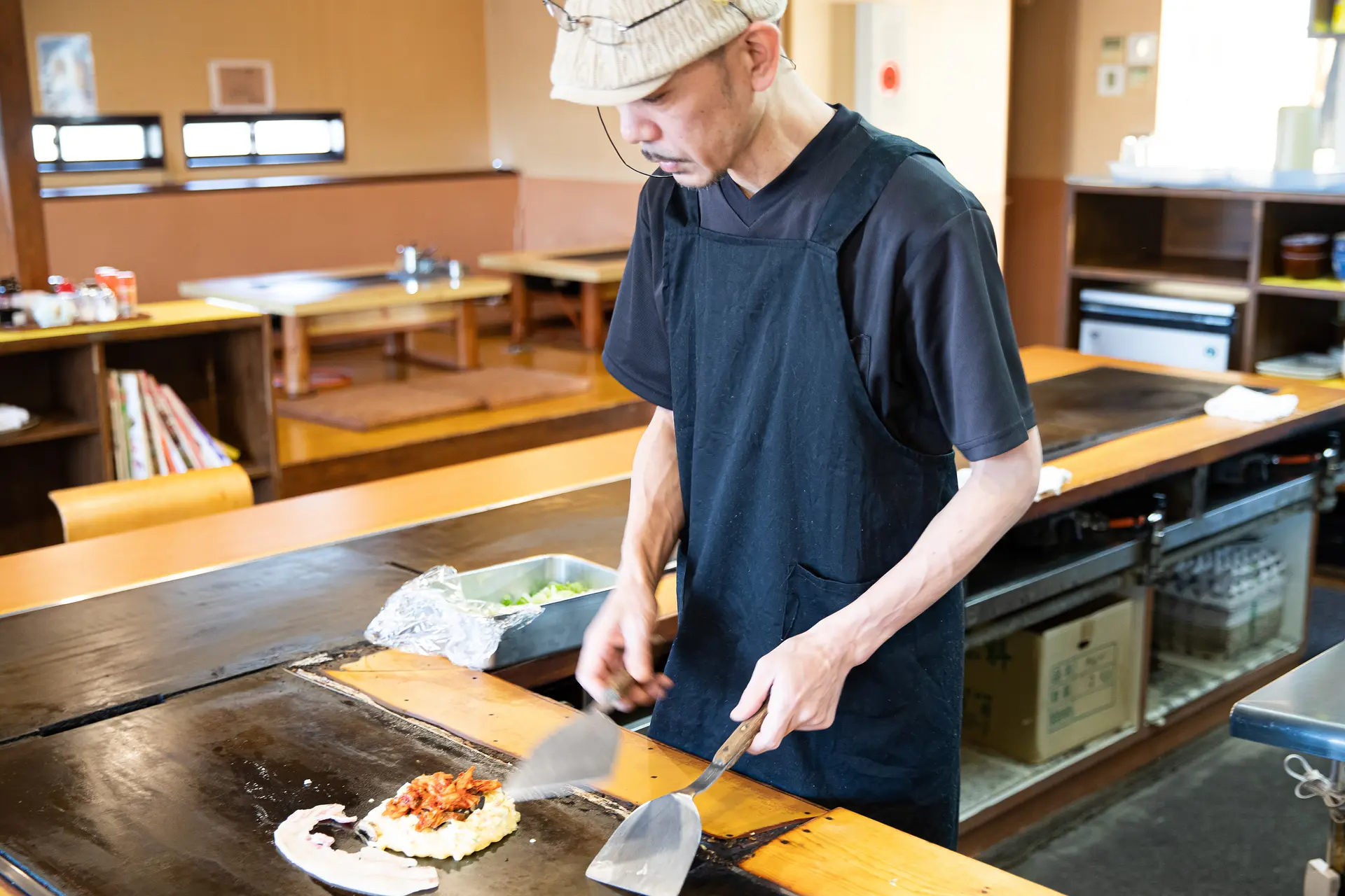 情に厚い店長が熟練のコテ捌きで焼き上げる絶品メニューの数々。食べてみる価値はありそうです!