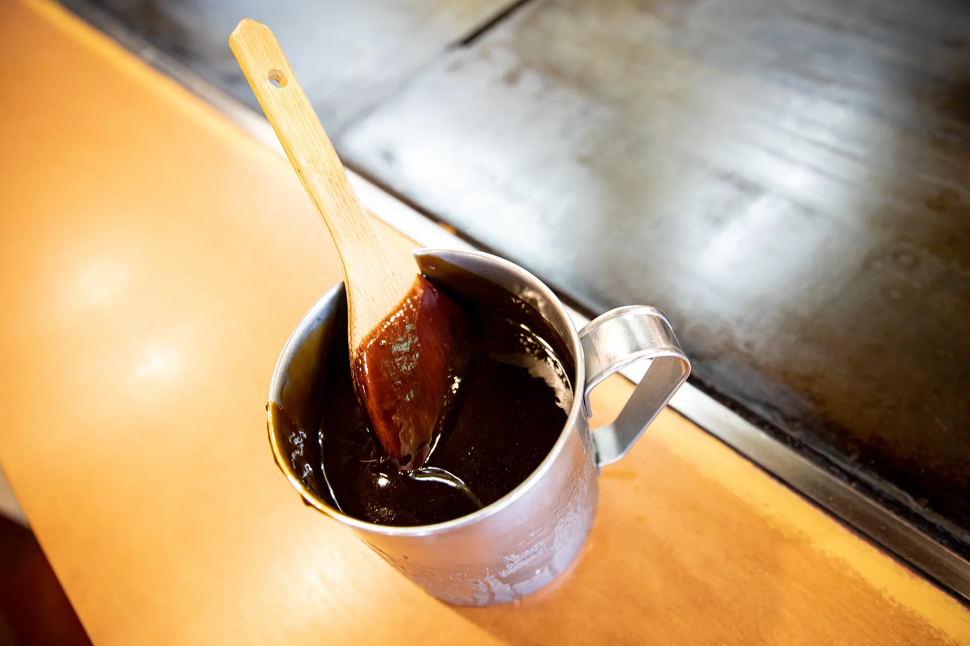 生命線ともいえるソース。最初はお好み焼きの本場大阪の味を参考にしていたと言います。