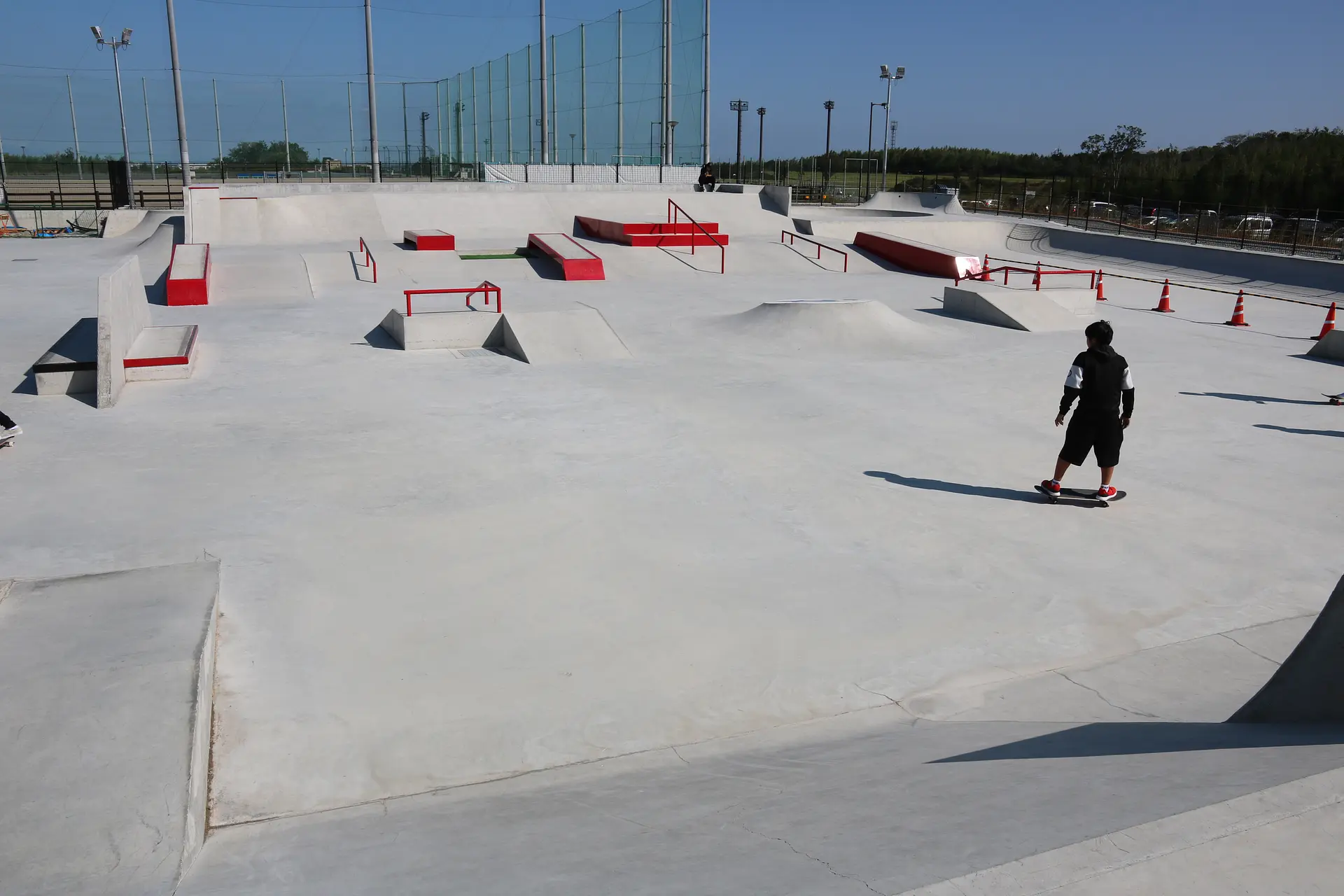 松阪市総合運動公園スケートパークは、全国最大規模の面積(4730㎡)を誇る三重県初の公共スケートパーク!3つの違った魅力的なエリアもあるから初心者から上級者まで大満足。スケートボードを思いっきり楽しもう♪