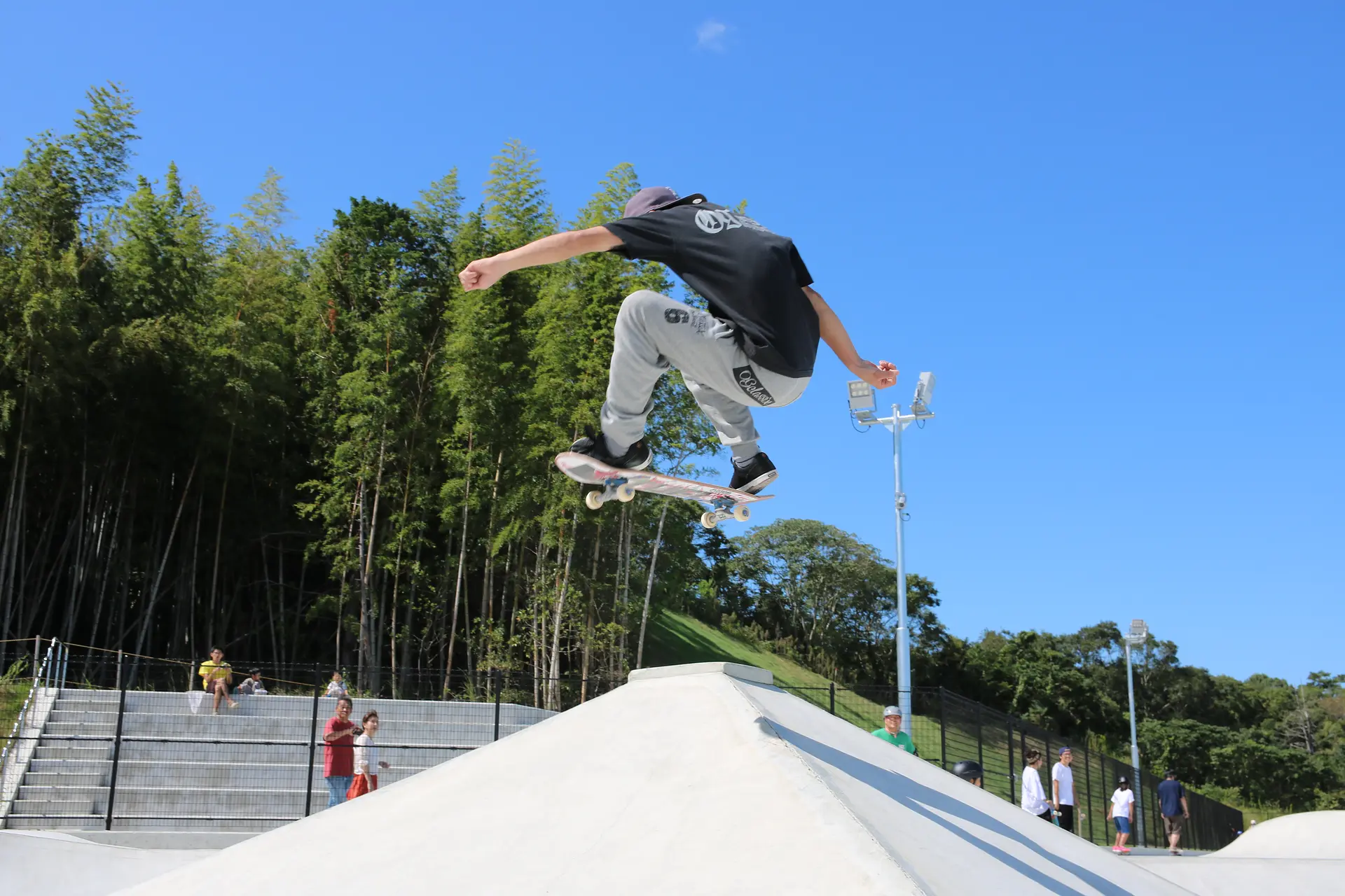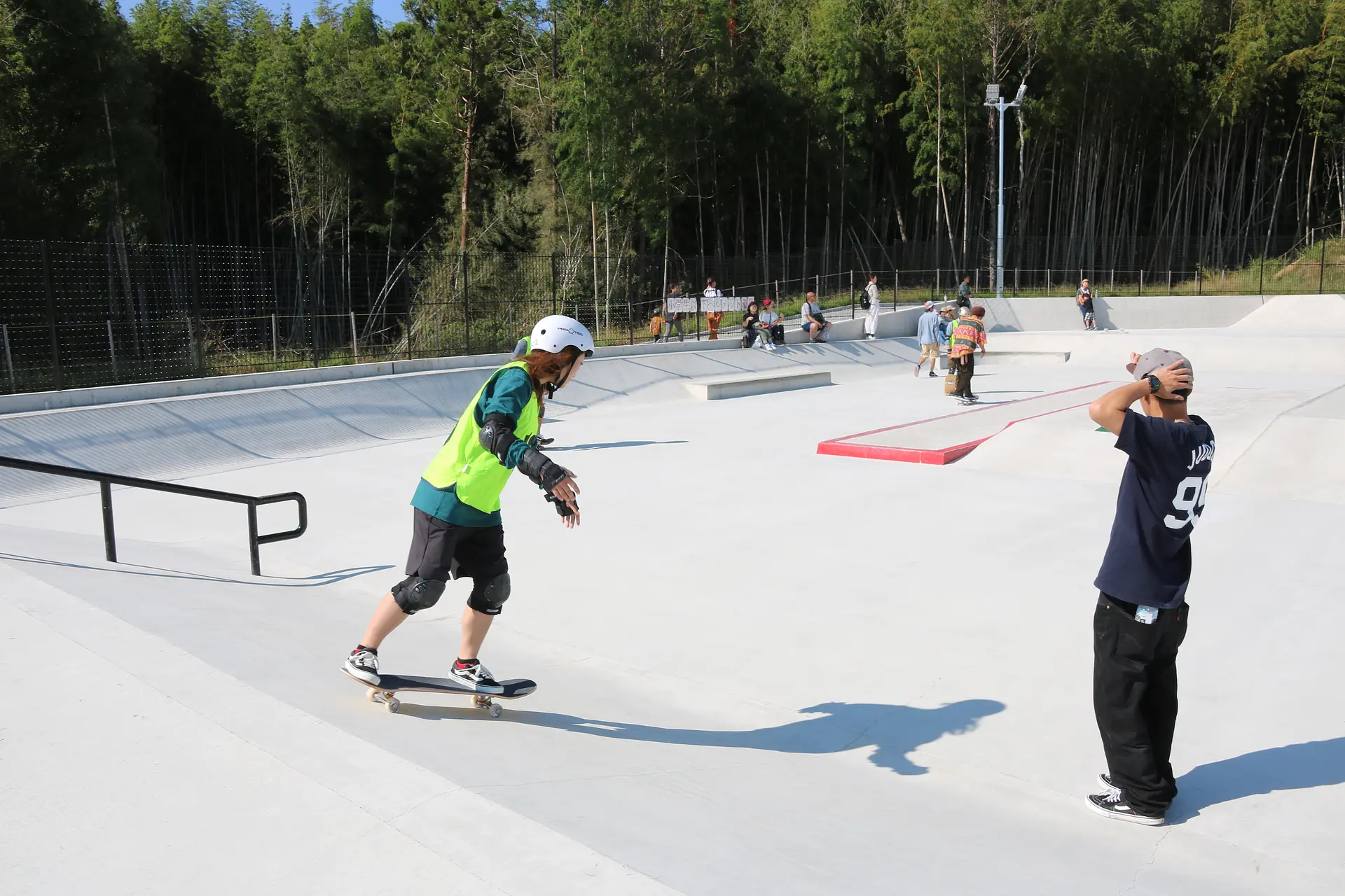 松阪市総合運動公園スケートパークはスケートボードをこよなく愛する方々が作ったまさに「スケートボード好き」のためのパーク。スケートボードに興味がある方もスクールなどを利用し、どんどんスケートボードに触れてみてください!
