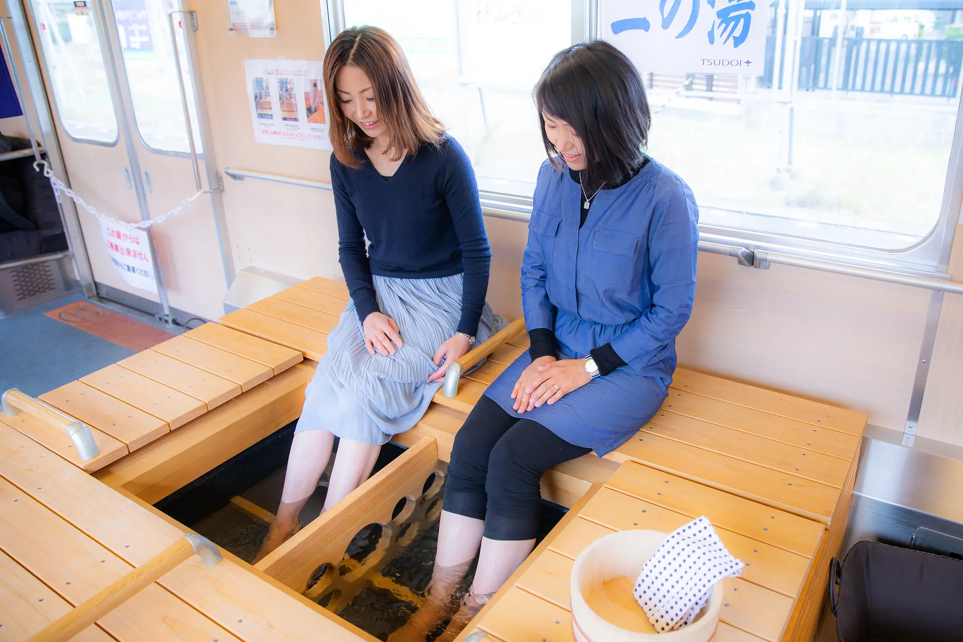 2号車に設けられている足湯キット。時間指定・入替制となっており、順番が来れば車内放送で知らせてくれます。