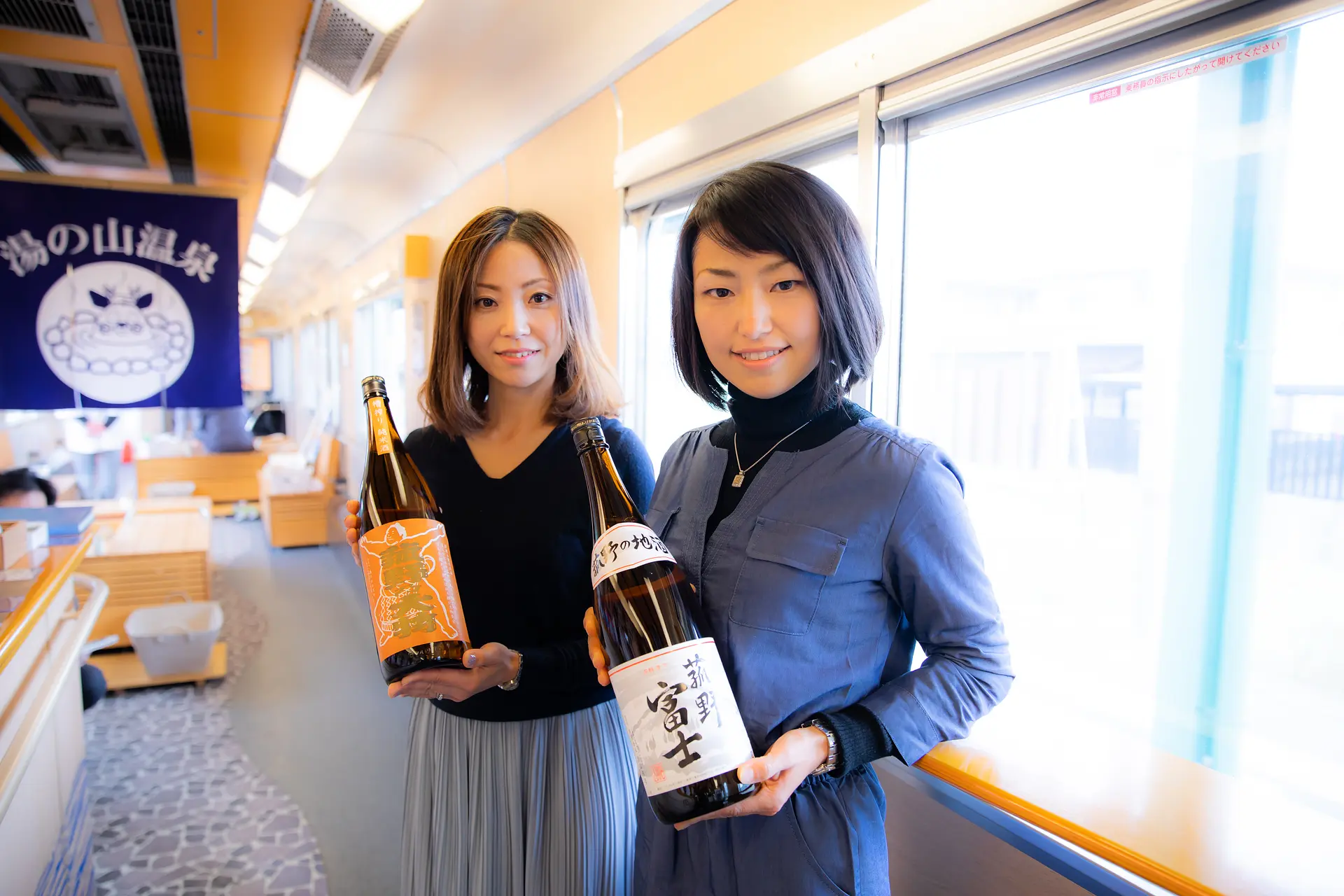 お酒好きにはたまらないのが、車内で菰野町の地酒を楽しめること。地元を代表する「菰野富士」「早春」「菰野乃大物」の3タイプが用意されています。
