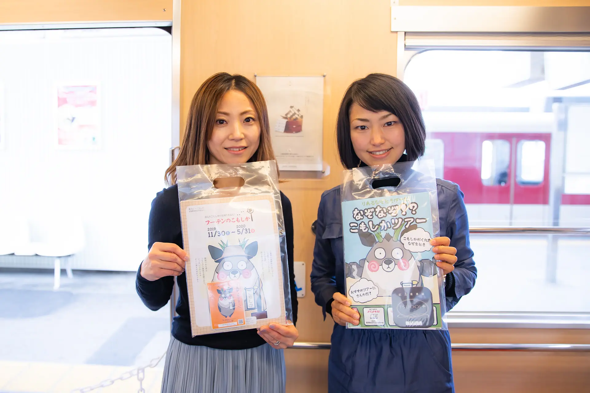 乗車した人全員に「コースター型記念乗車証」と「湯の山温泉割引手形」がプレゼントされます。さらに、車内で行う謎解きゲーム「なぞなぞ!?こもしかツアー」のセットも。