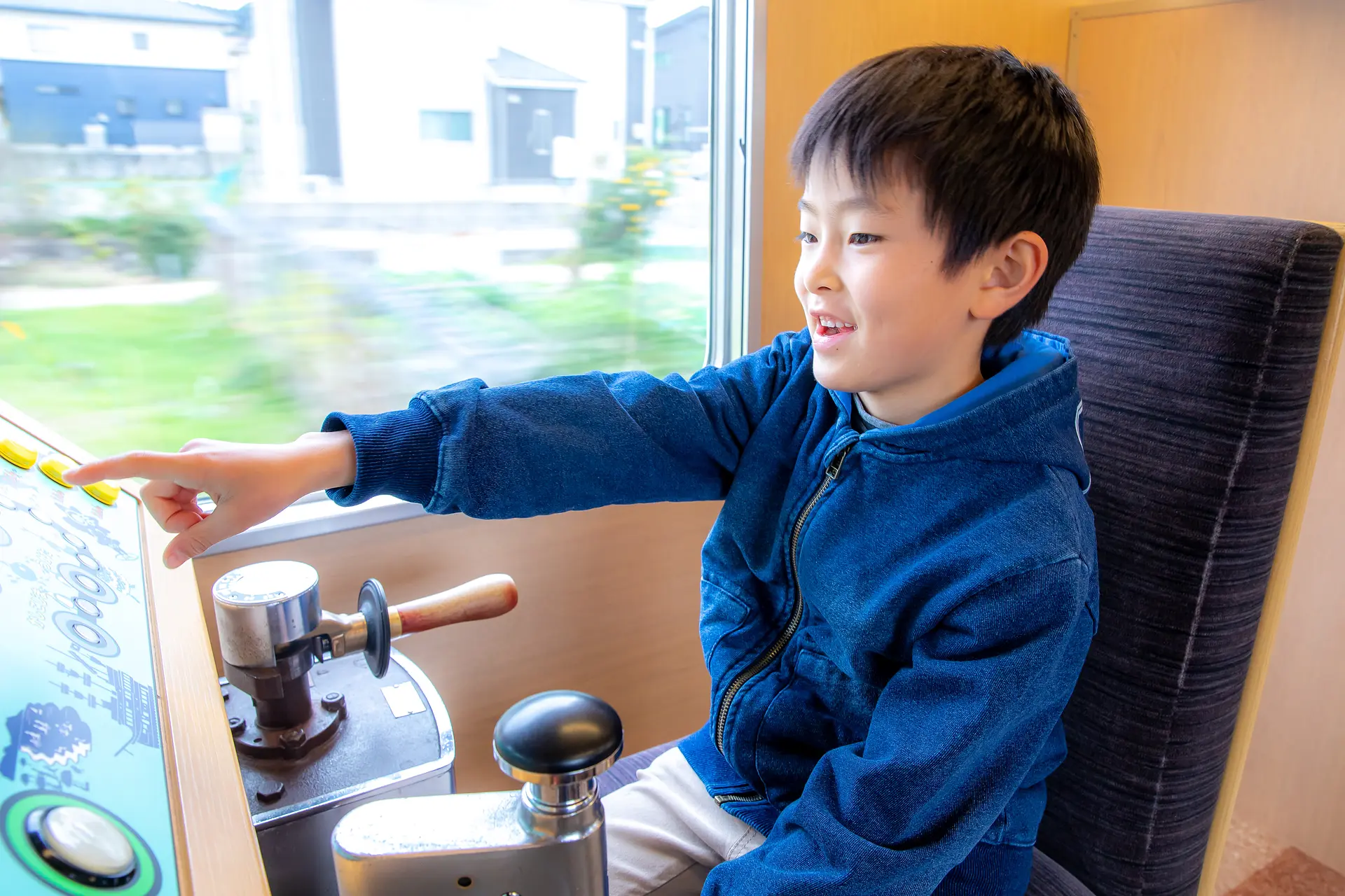 3号車に備えられている「こども運転台」では、ボタンやハンドル、レバーを操作すると画面が変化していき、気分はすっかり運転士!鉄道好きの大人も思わず座りたくなってしまうぐらいですが、あくまでも子ども優先でお願いしますね。