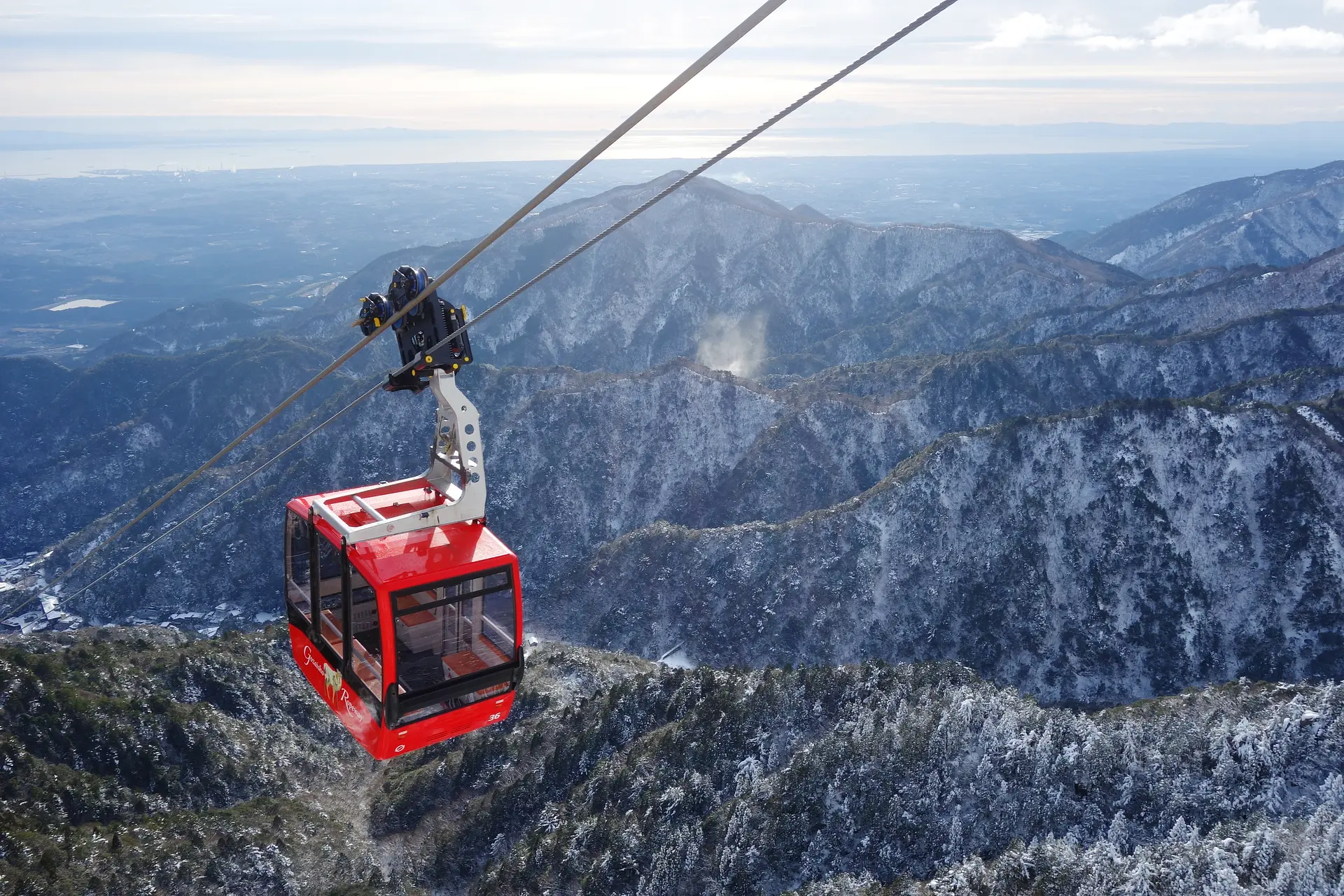 山上公園駅まで約15分間、徐々に装いを変えていく遥かなる山々を眺めつつ、高低差780mのゆったり空中散歩を体験しました。