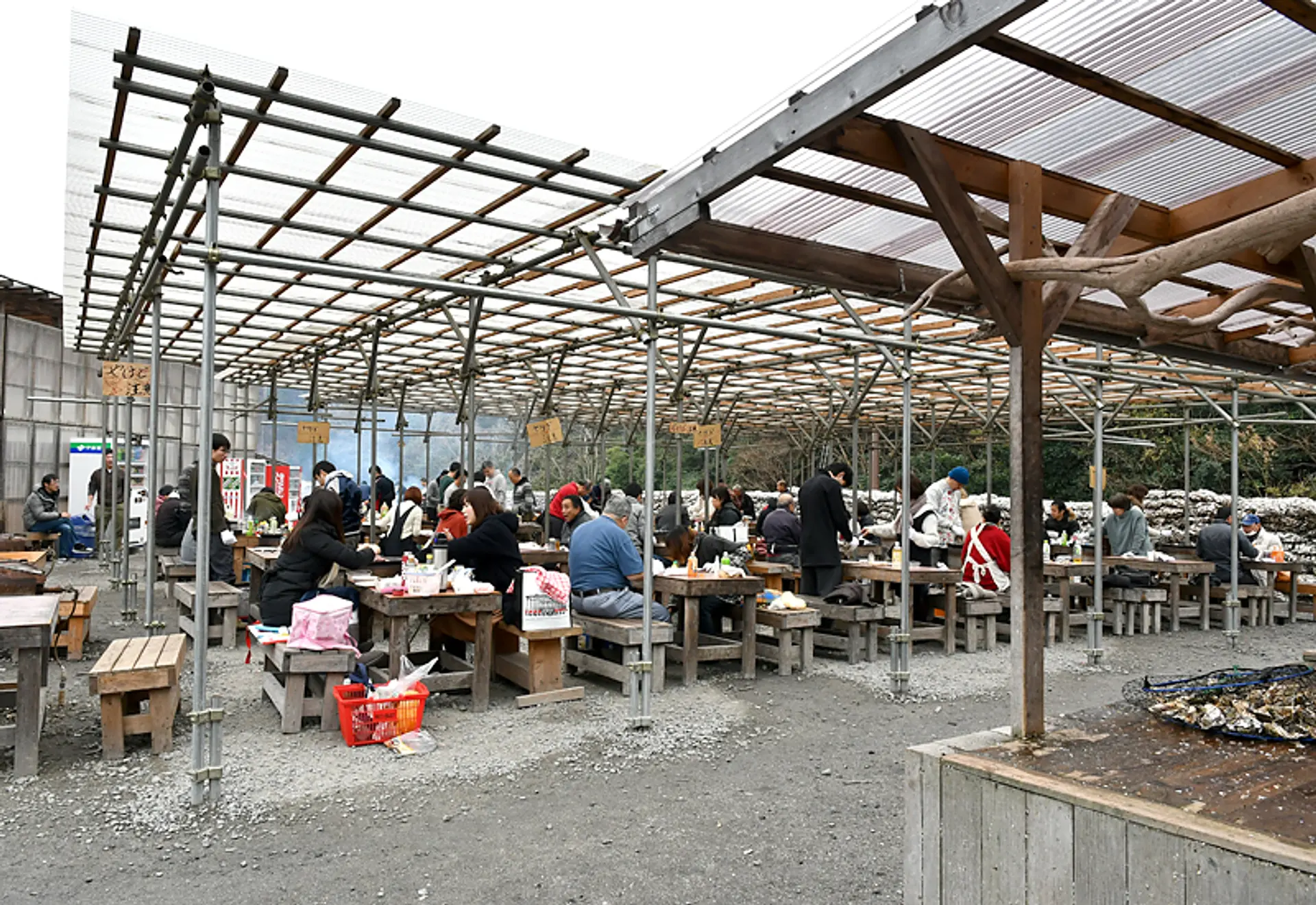 今回は、調味料とお茶だけ持ち込みましたが、お隣には牡蠣の合間に肉を焼いて賑やかに楽しんでいるご家族もいらっしゃいました。