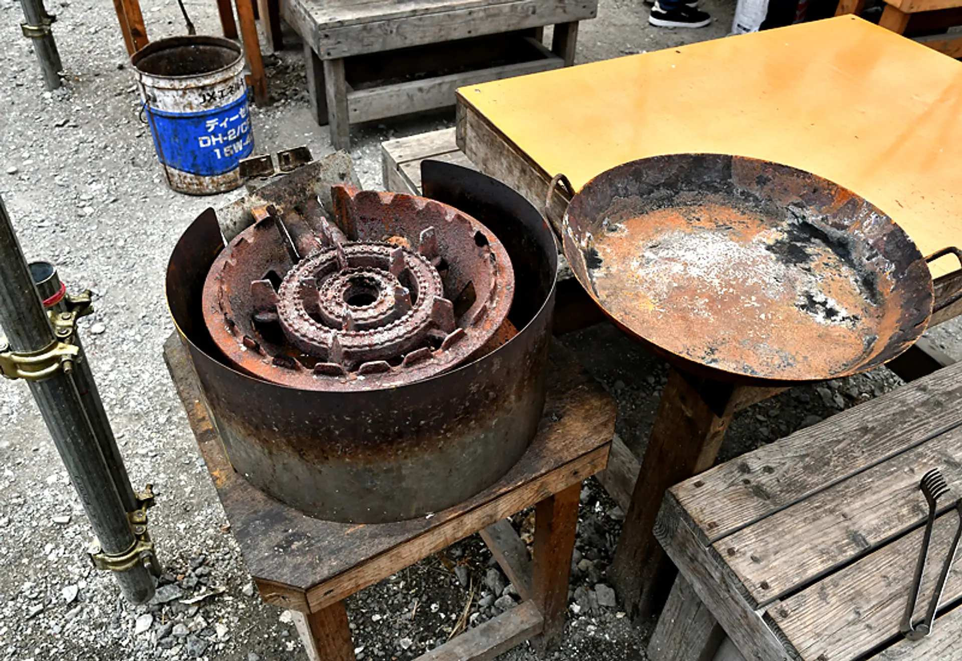 ガスコンロのテーブルか、炭のテーブルかを選ぶと、お店の方がテーブルをセットしてくれます。