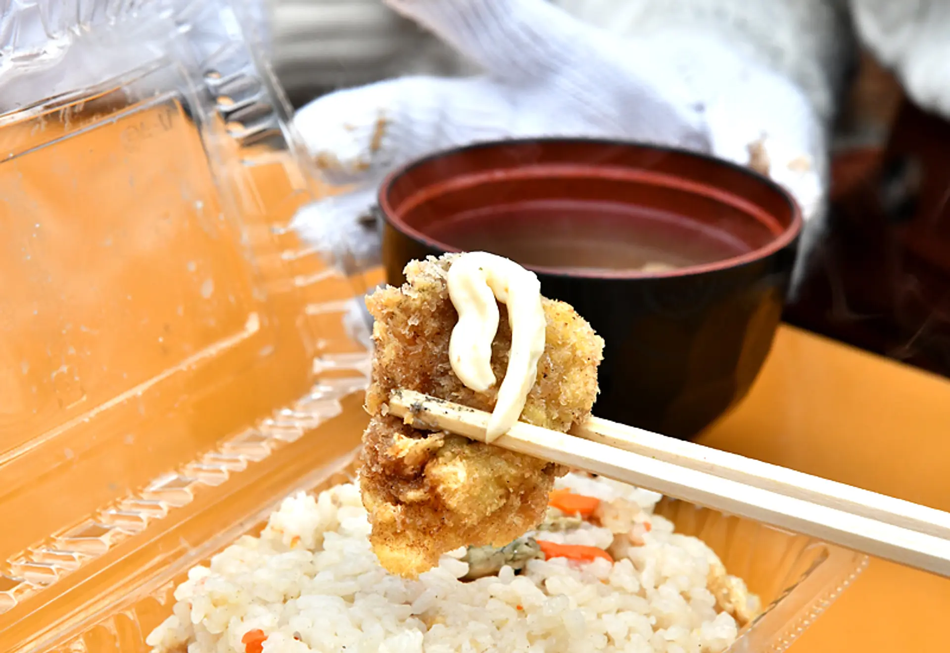 他にも、受付の隣で牡蠣入りの炊き込みごはん「牡蠣飯」や「牡蠣入りみそ汁」も販売していますよ!