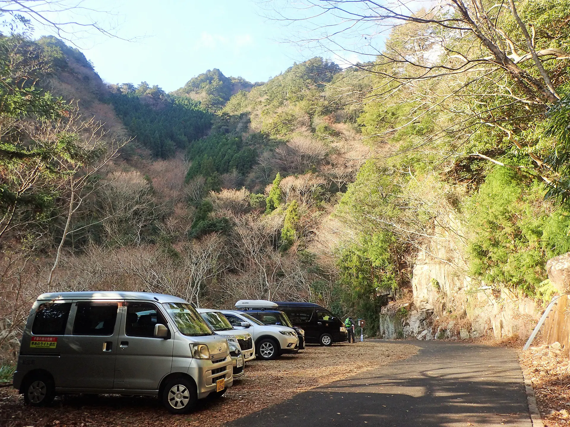 林道は落石などがある場合もあるので、運転は慎重に。登山口は6台ほどが駐車できるスペースがあります。