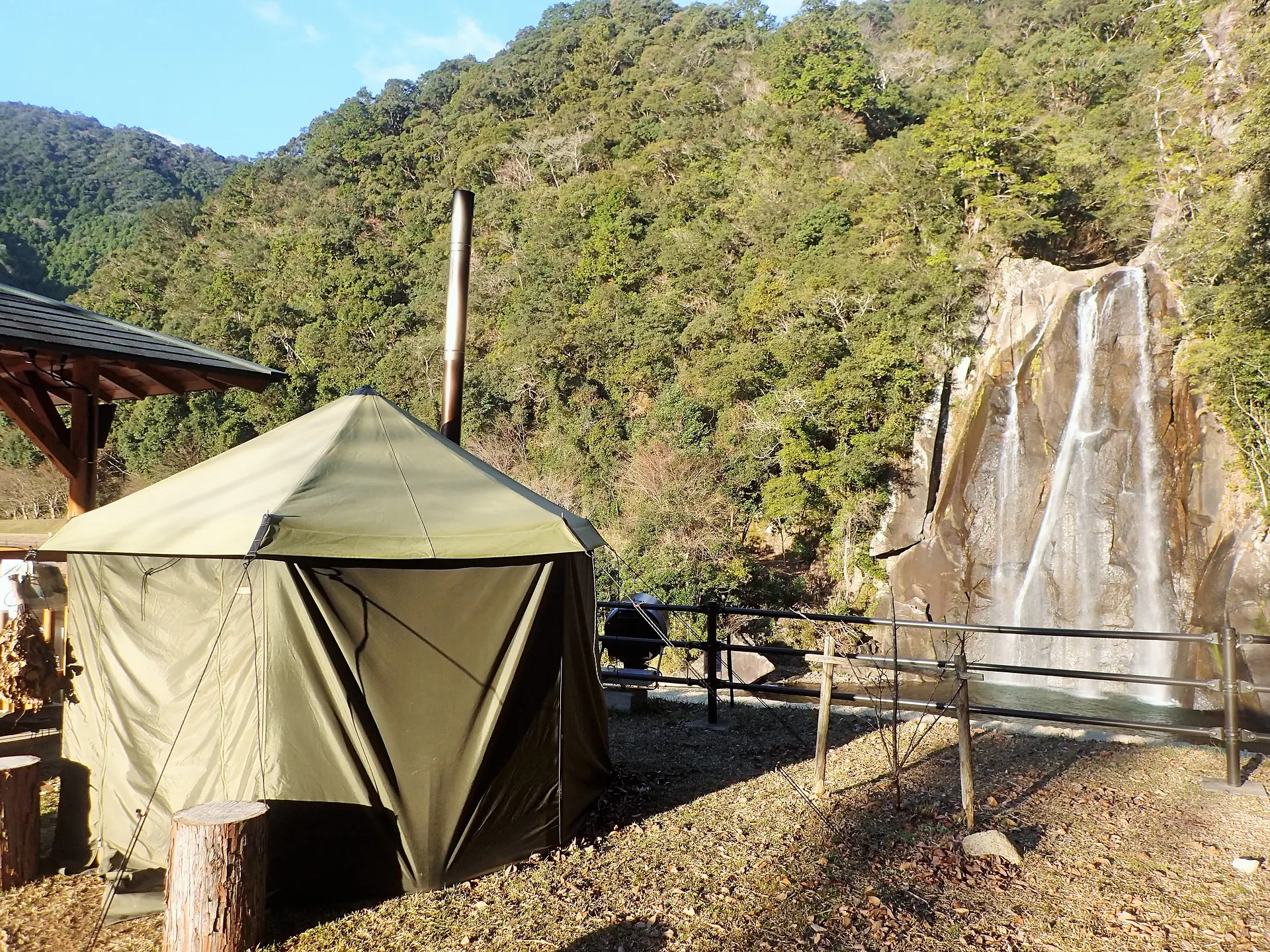 高さ30メートルの美しい「飛雪の滝」を望むキャンプ場は、キャンプサイトの他、2018年4月にコテージが新設され、さらに便利になりました。