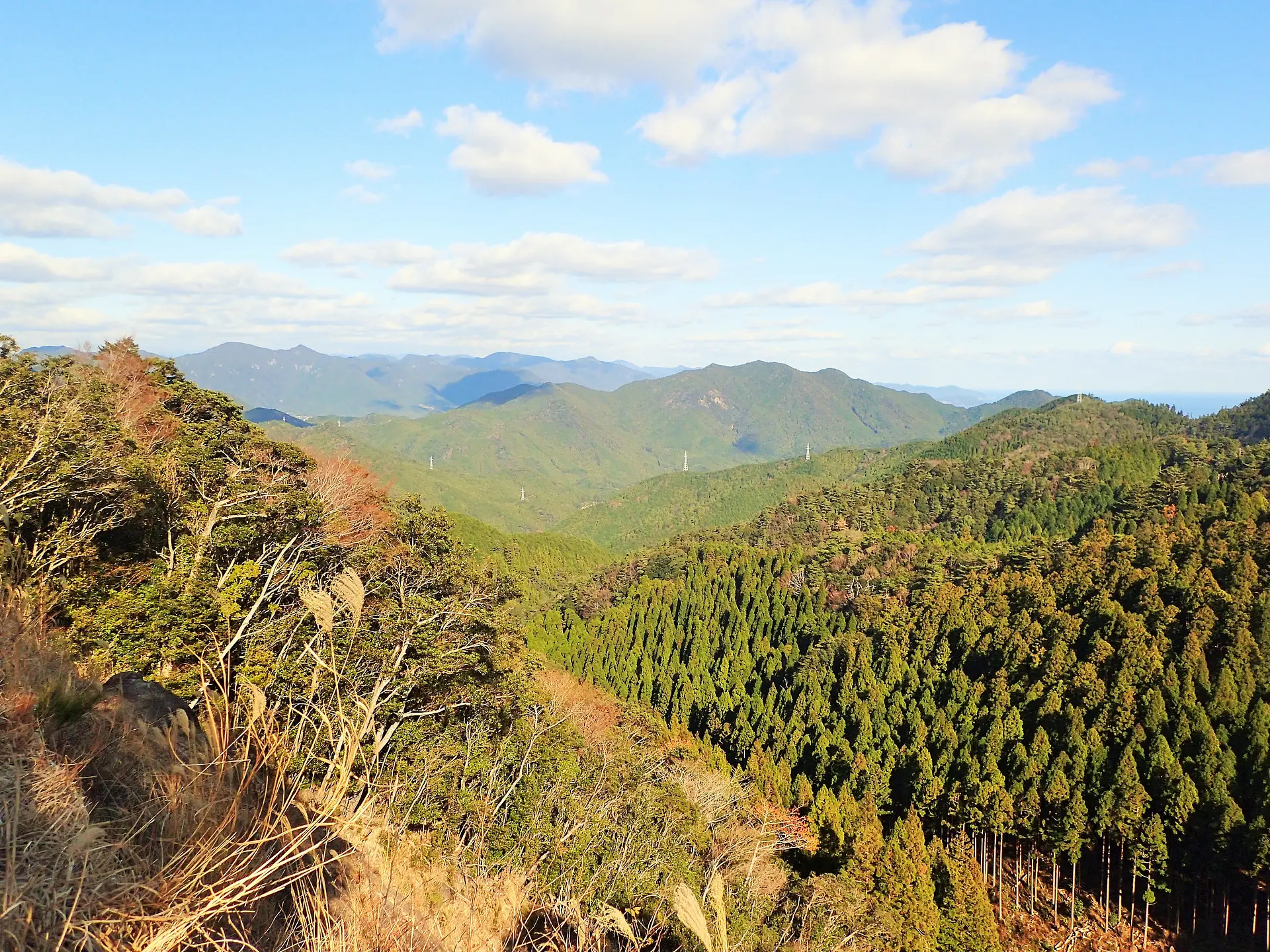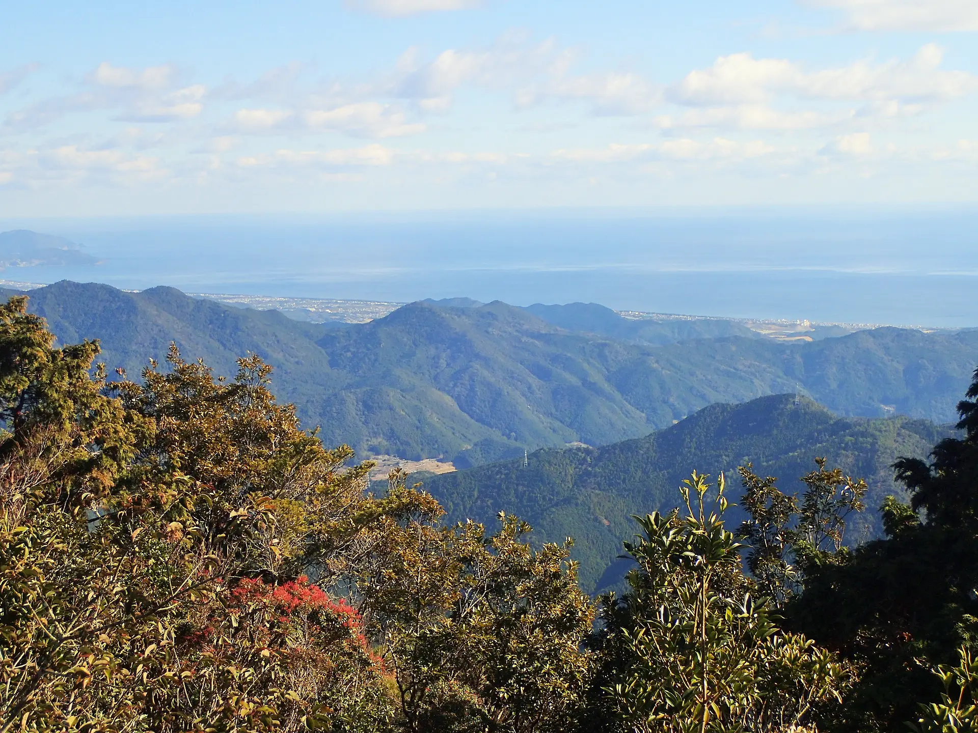 頂上からは東側に太平洋の大海原が、北側には雄大な山並みを望むことができます。