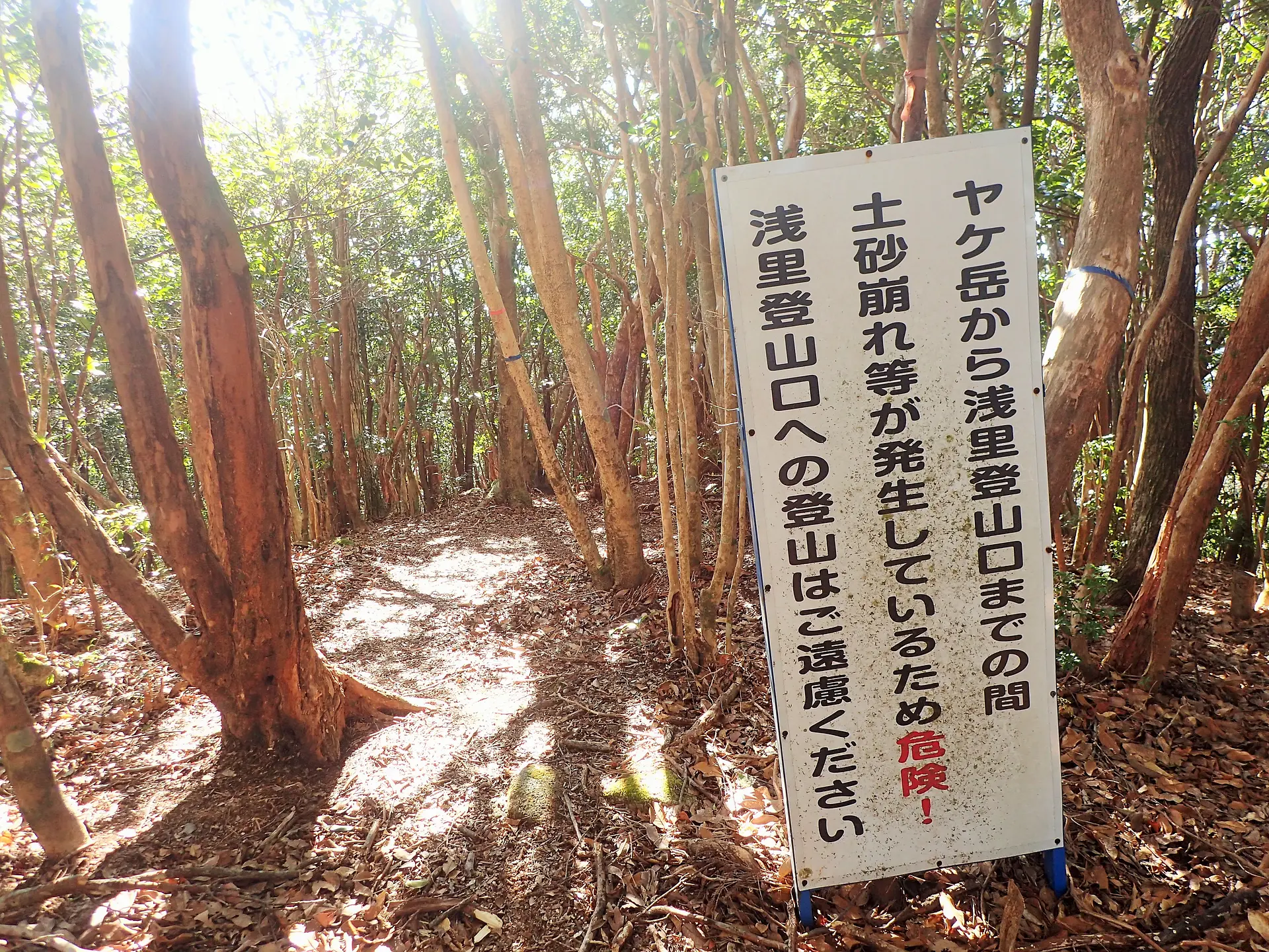 新道とはいえ、既にこの道は廃道となっており、利用することはできません。しかしこの分岐に入って5分ほどで展望のよいヤケ嵓と呼ばれる岩場があり、そこまでは歩けるため、天候がよければ往復してみるのもよいでしょう。