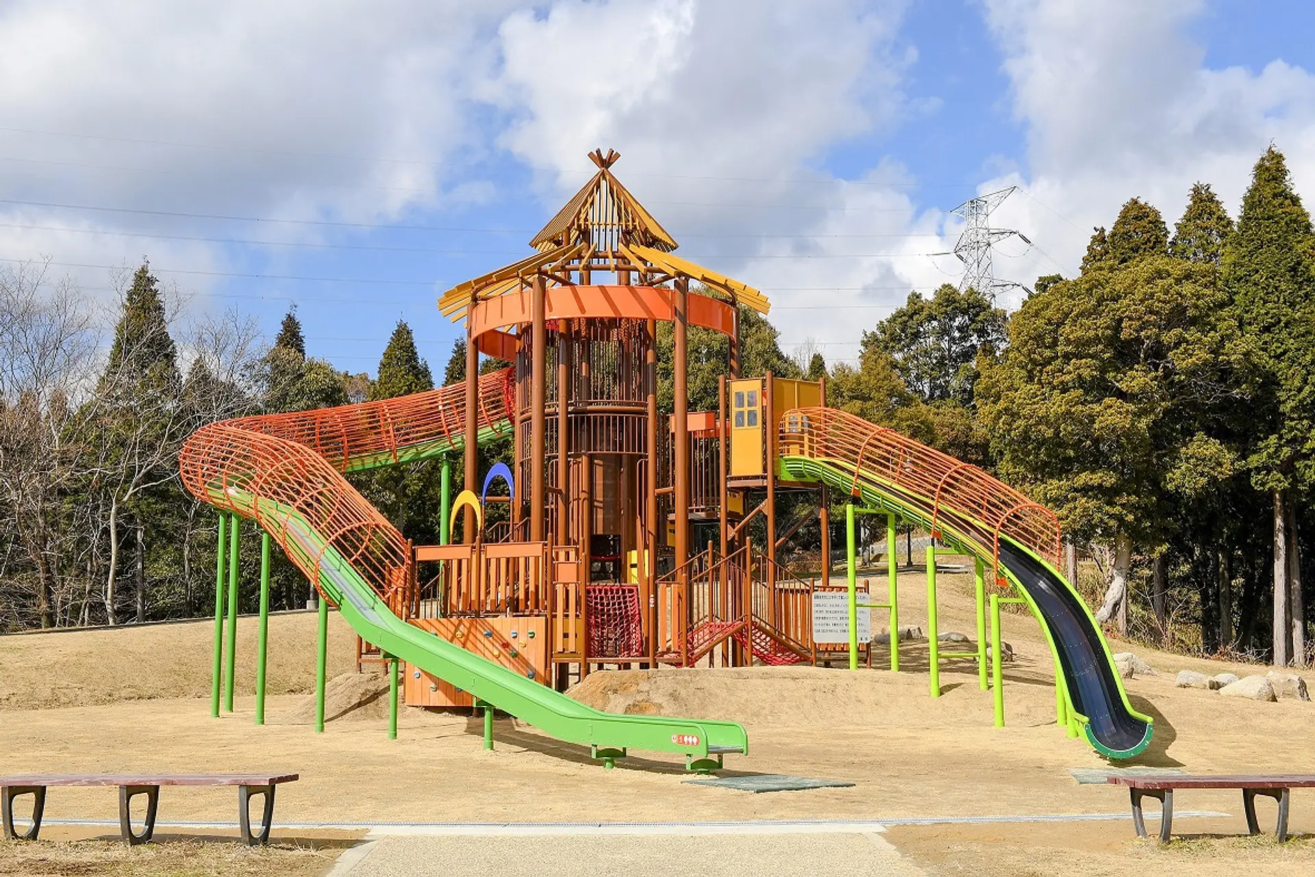 以前あった複合遊具が建て替えられ、2017年12月、装いも新たにリニューアルしました。高さの異なる場所から2本の長いすべり台が設置されており、子どもはもちろん大人も楽しめますよ!
