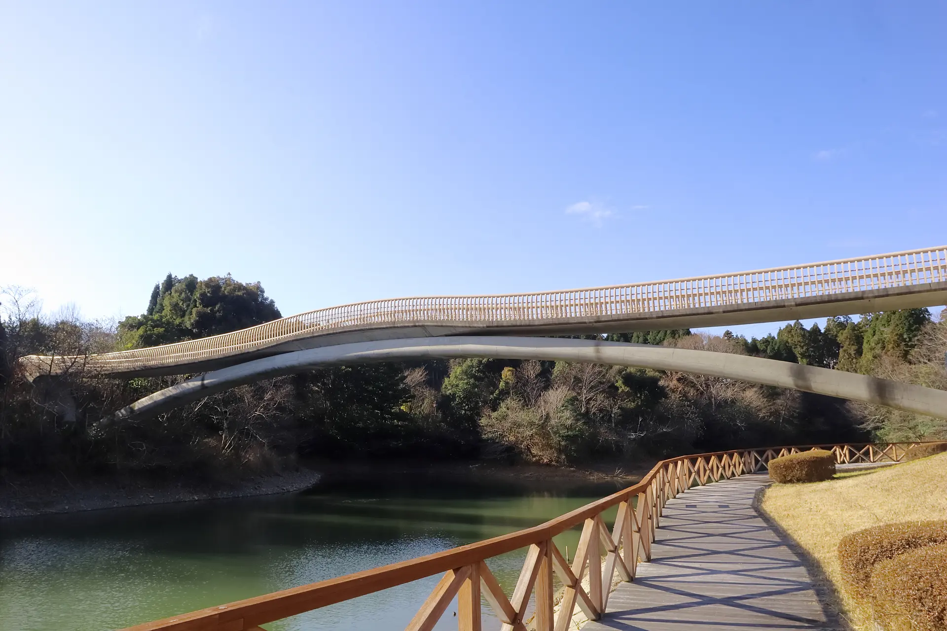 高塚池を上から眺めるには、サンシャインブリッジからどうぞ。波状につくられているので、つり橋のように「ゆらゆらゆれる感覚」を味わえるかも?!