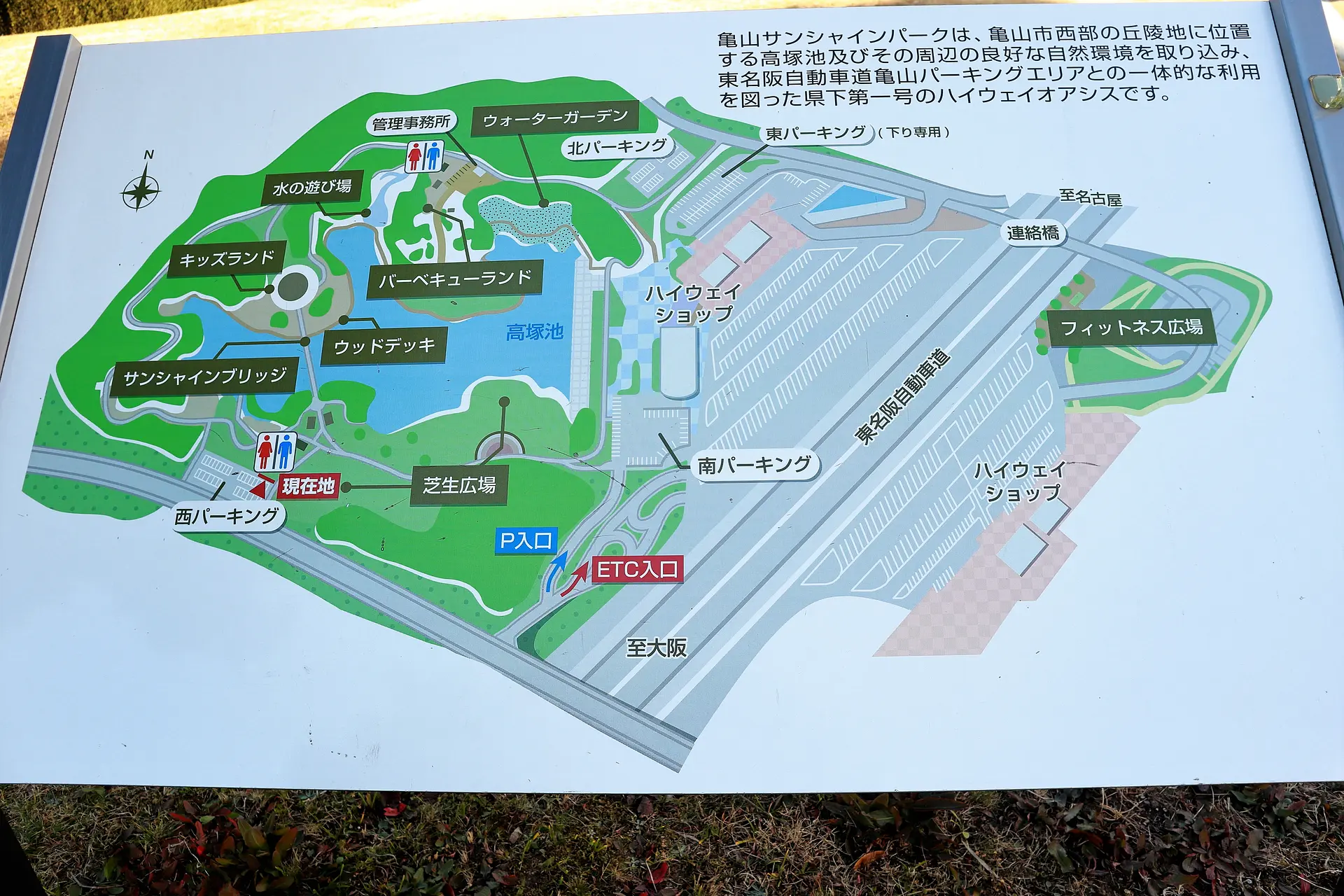 この他には、池に入り江につくられたウォーターガーデン、数種類のフィットネス器具が設置されたフィットネス広場もパーク内に併設されています。長時間のドライブで凝り固まった体をほぐし、ゆったり小休憩するのにも最適!ぜひ亀山サンシャインパークへ立ち寄ってみてくださいね。
