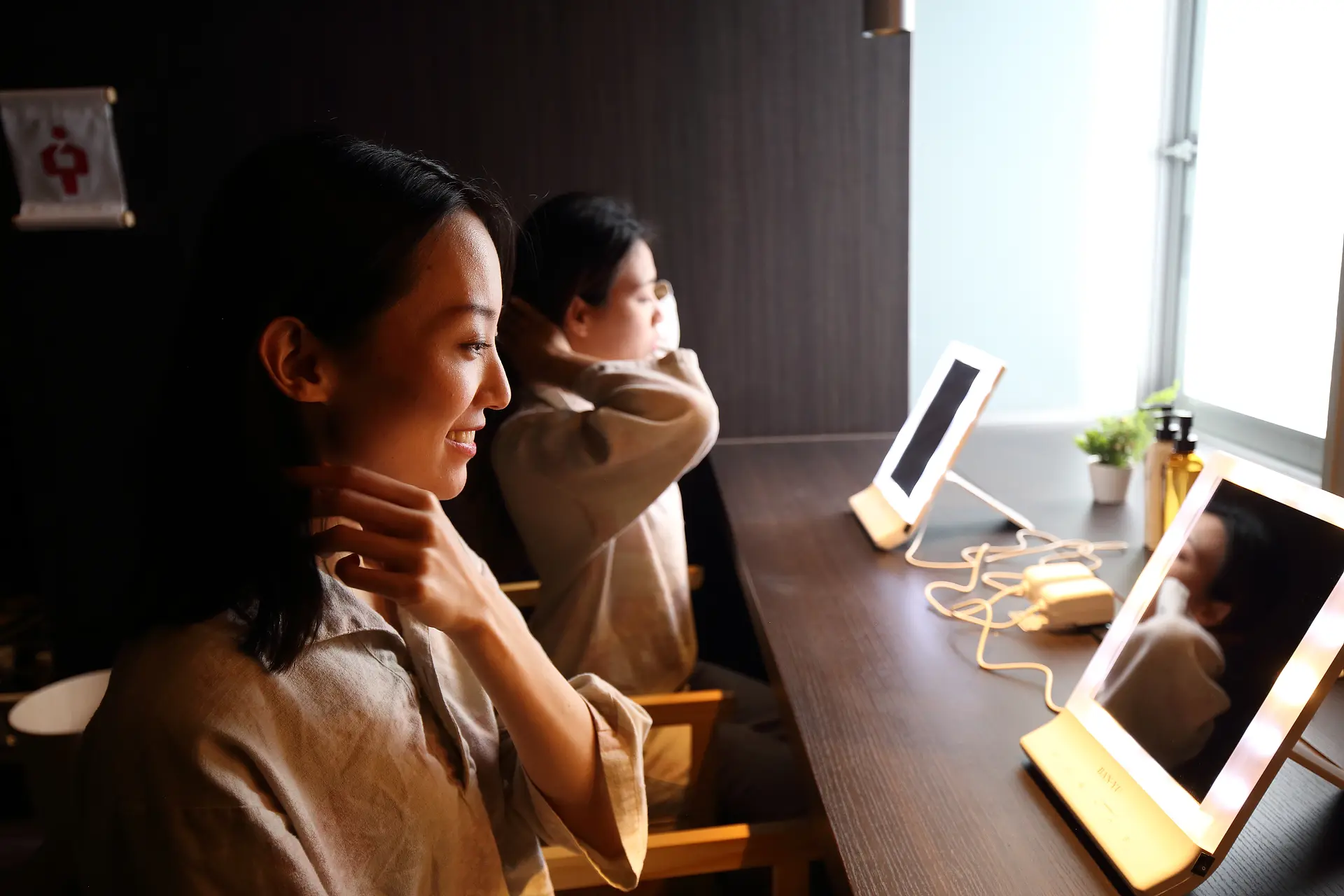 女性専用エリアにはパウダールームも設置されており、セキュリティカードで入退室が管理されているので、お一人様でも安心して宿泊できます。