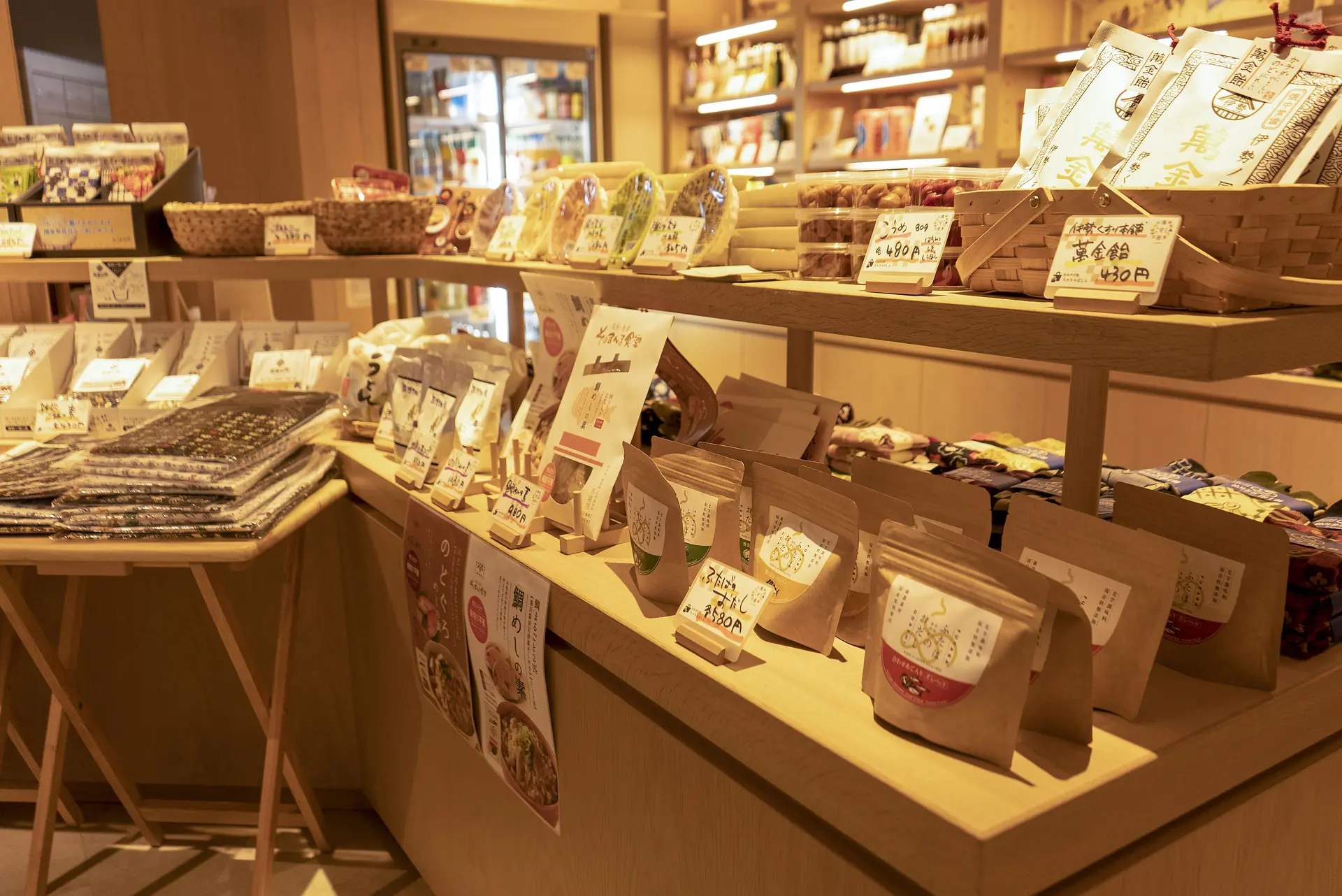 おみやげ処「ちゃちゃばしら」では、地元名産のお土産や、オリジナルグッズの数も豊富です。鈴鹿あられや大入道せんべいなどのお菓子類を購入して、館内で食べるのもOKですよ。