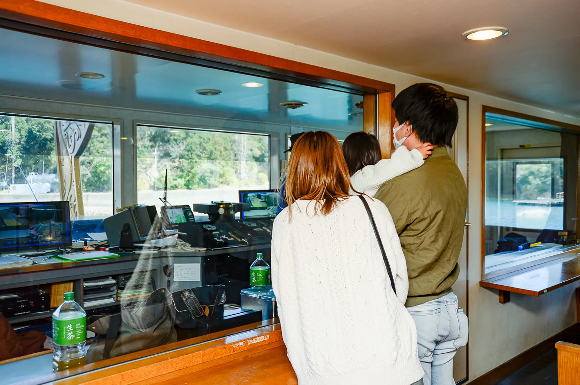 家族が最初に気になったのは操舵室。すぐ後ろの席に座って、操船の様子を見て楽しむこともできます。