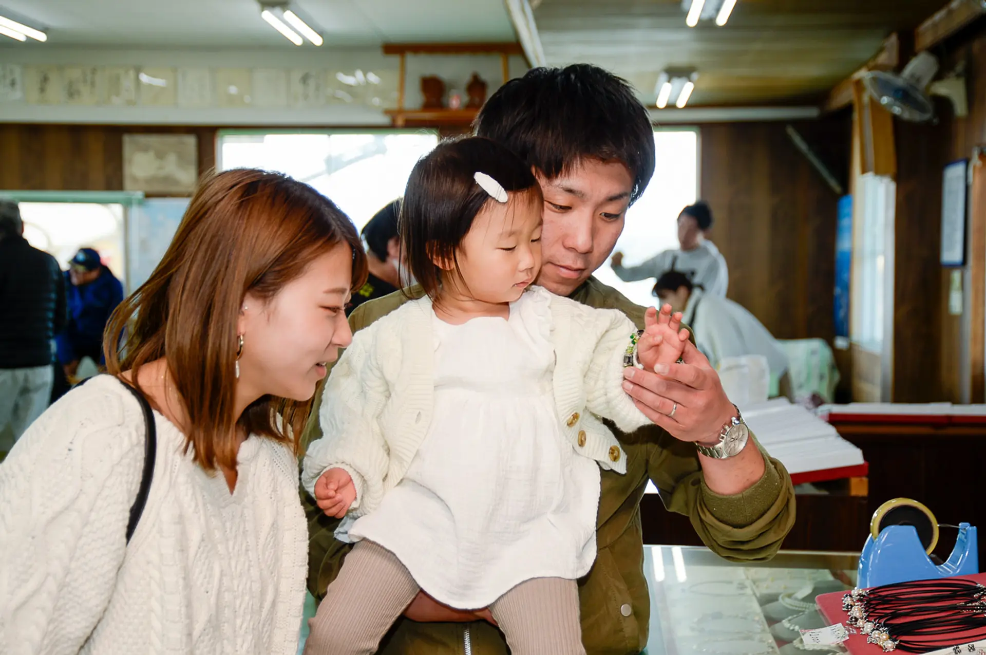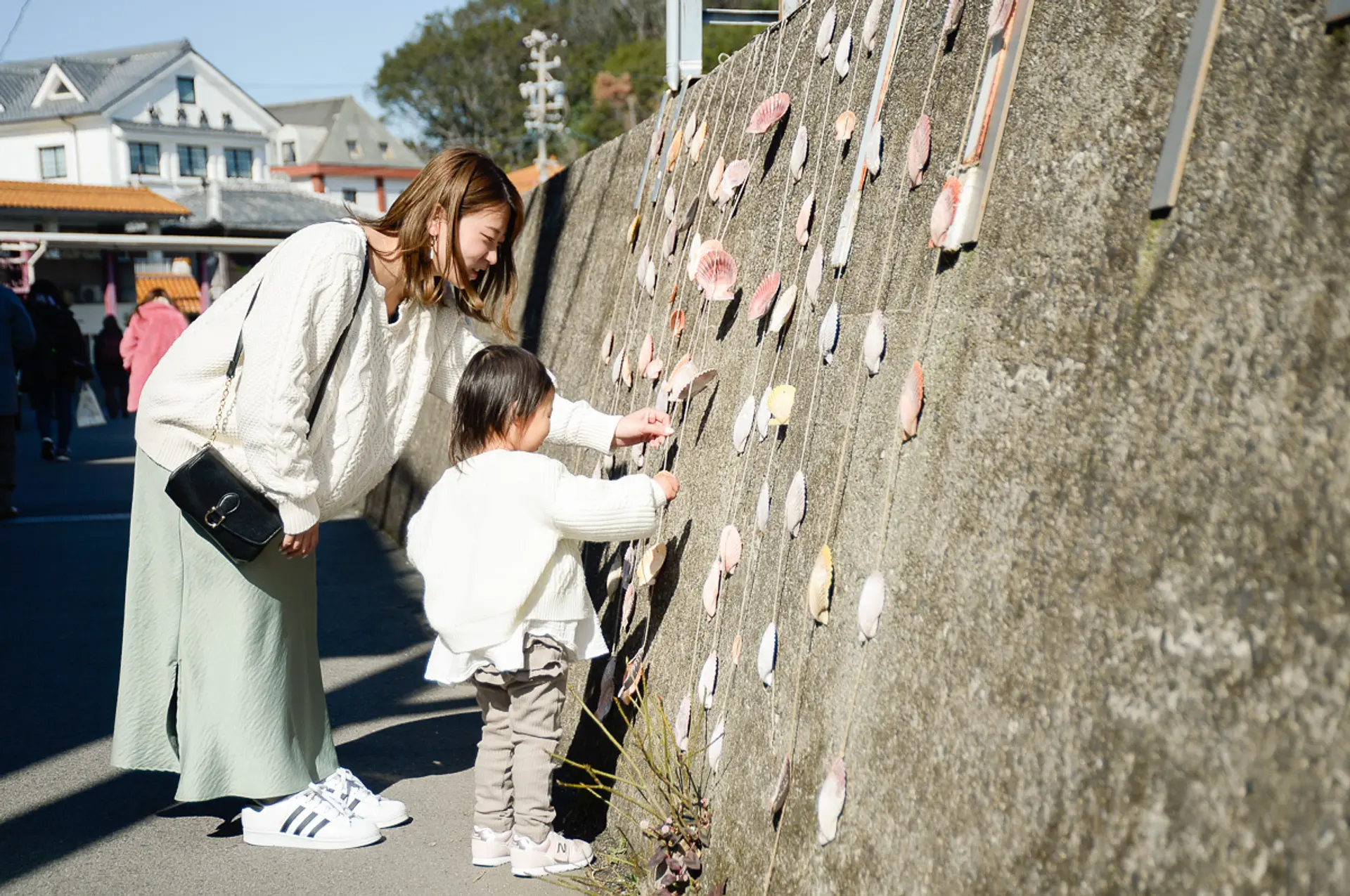 帰り道は、堤防に飾りとして吊るされていたアッパッパ貝の貝殻で遊びました。伊勢志摩らしさいっぱいのこんな風景も見どころです。