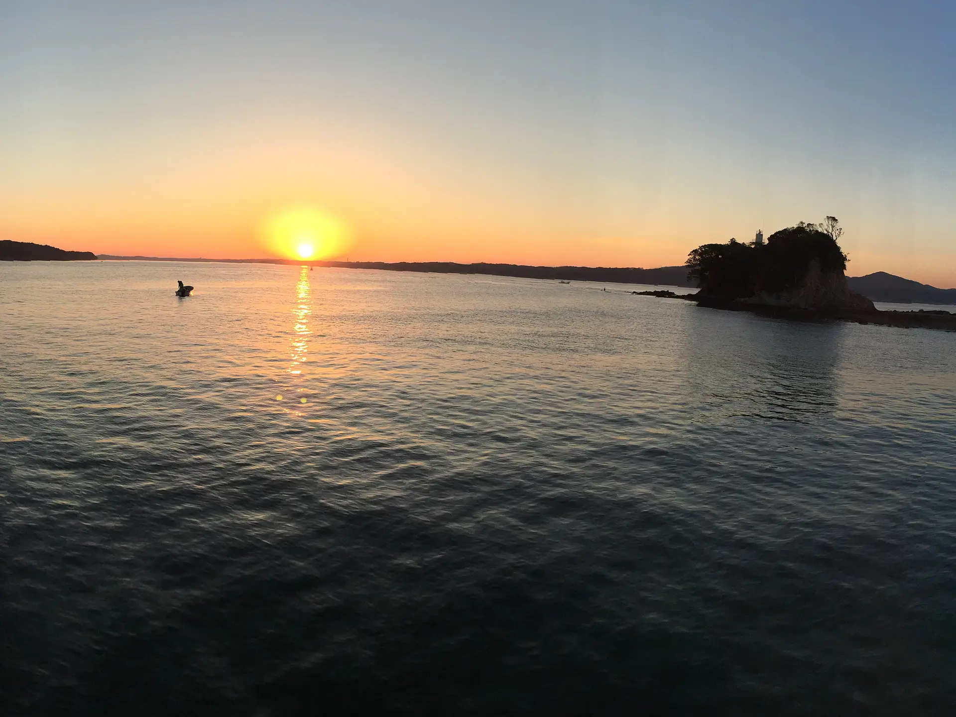 前島半島から昇る日の出を望むコースで、夕闇に隠れていた景観が朝日に照らされて露わになる瞬間は圧巻です。