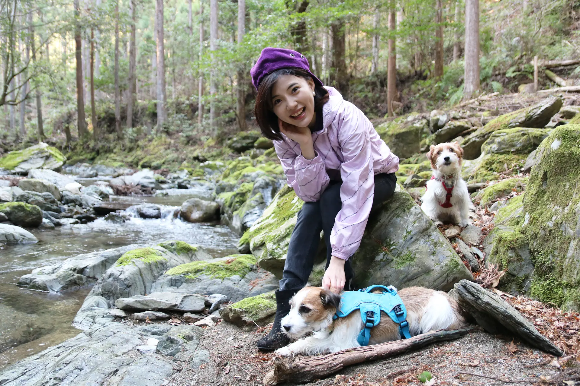 小田さん・ジャックラッセルテリアのゲンキくん・のんきくんと共に森をお散歩です。ワンちゃんと一緒に森の香りや音、川のせせらぎを楽しみます♪