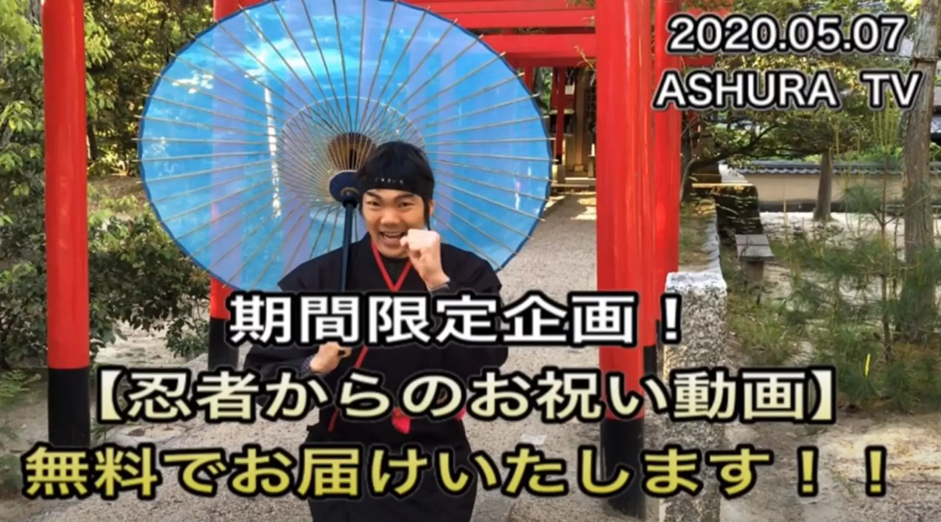忍者が「おめでとう・ありがとう」に関連したお祝いメッセージ動画を、期間限定(2020年6月30日まで)で無料で届けてくれます!